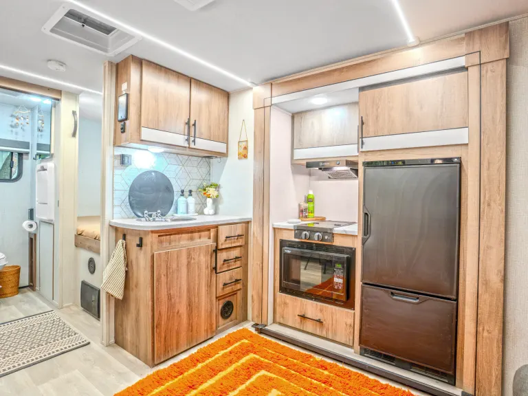 - Convection microwave, Furrion appliances, and a bar-style counter perfect for prepping and enjoying meals