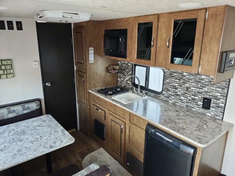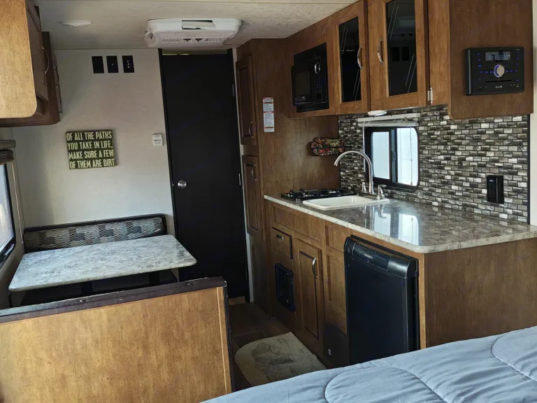 Meet Sparrow! Affectionately named for being our smallest camper in the fleet. But don't let that fool you. There is a very ample amount of room inside for a romantic getaway weekend for a couple or a dinette bed for an extra kiddo or two. This camper is very lightweight and tows like a dream. It has a nice size, full bathroom, plenty of storage and a very comfy upgraded queen size memory foam mattress. With an electric jack and an electric awning setting it up is a breeze.Cosa è incluso•pillows, blankets, sheets, pillowcases, towels, washcloths