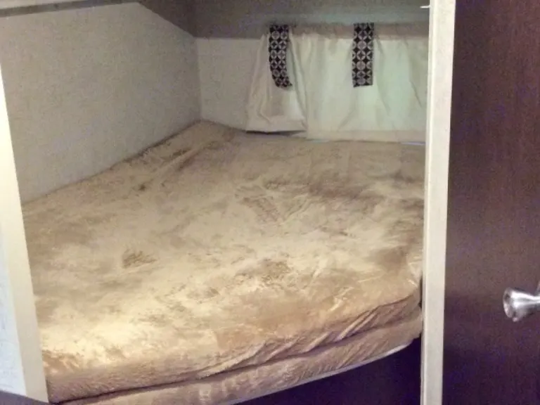 Cozy camper with private queen bed and rear bunks. Featuring a fridge and a nice bathroom. Perfect for the family!