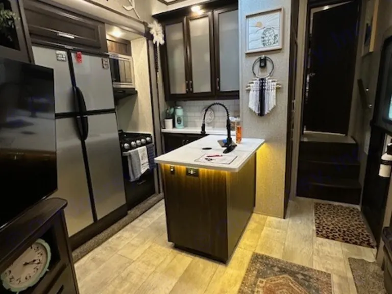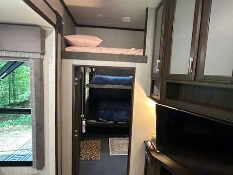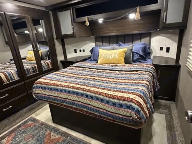 Enjoy the great outdoors in the lap of luxury with all the amenities of home. We have included everything you could possibly need to enjoy your well deserved vacation. You will feel right at home with our heated massage recliners, fireplace, tv/dvd and premium sound system. Bring the outdoors in and relax on the covered patio. There is plenty of storage and space for the whole family. This camper boasts 3 queen beds and a twin loft, tv in both bedrooms and two separate bathrooms. Eat out or eat in...we have a 3 burner stove, oven, microwave, large pantry and large fridge/freezer. Camp in comfort in our beautiful home on wheels!Cosa è inclusoOur camper includes fresh linens, hand towels, kitchen towels, bath towels, hair dryer, drying rack, small charcoal grill, toaster oven, Keurig coffee maker, cookware, cooking utensils, serving platters, mixing bowls, utensils, cups, bowls, plates, crockpot, dish soap, cleaning supplies, trash bags (kitchen), toilet paper, paper towels, rubbermaid folding table, 2 zero gravity lounge chairs, and 2 outdoor rug.