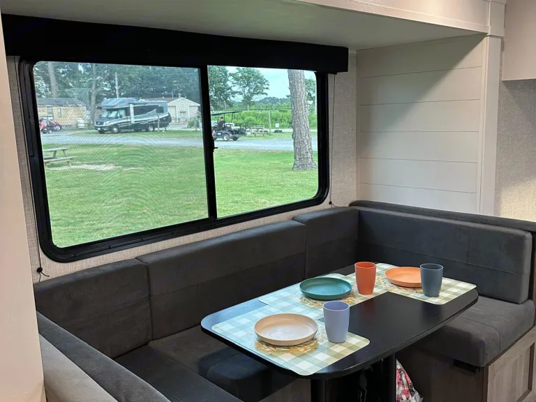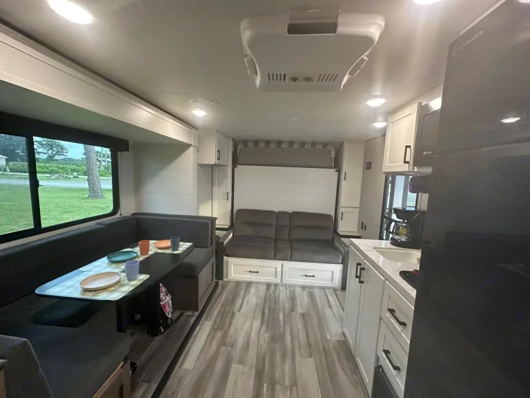 Ready to make unforgettable memories with friends or family? Welcome to my brand-new 2025 Jayco RV! It comfortably sleeps up to 5 people and includes a kitchen with the essentials: pots and pans, microwave-safe plastic plates (large and small), cups, and utensils for 5. You’ll also find a coffee maker with a reusable filter (please don’t throw it away!), a French press, and both a regular and electric kettle. For outdoor enjoyment, we provide 2 camping chairs and an outdoor rug. There’s also a broom and dustpan for quick cleanups. The 2-burner gas stove (The lighter is found in the utensil drawer)- Pet friendly