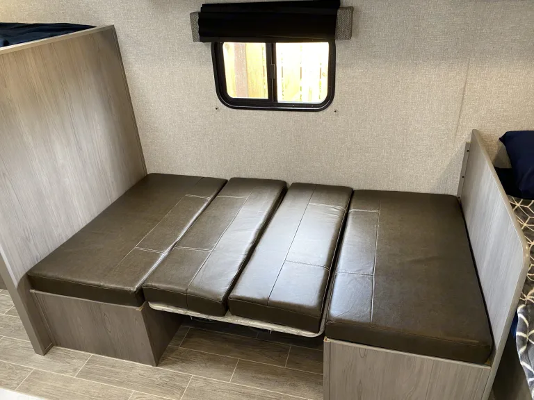 The A/C blows ice cold and the heater heats up the camper in minutes! Sleeps 5, the main bed is a queen size memory foam mattress, includes tons of storage, propane, fridge, kitchen sink, microwave, heater, hot shower, and toilet.Cosa è incluso5 camping chairs, Bluetooth speaker, portable BBQ, grill tools, bed linens, pillows, towels, cookware, dishes, and utensils.