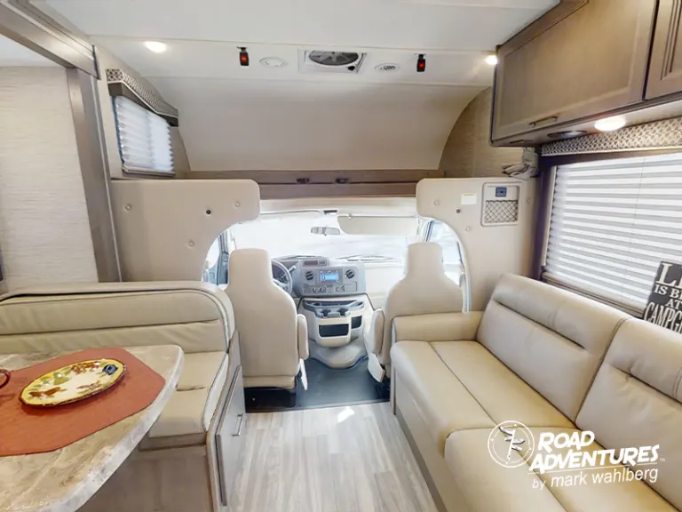 The Thor Four Winds 28Z is a widely popular floorplan! It has a queen bed, a kitchen with a slide-out, a 71" Dream Dinette, a 68" jack-knife sofa, and 7 seat belts. With sleeping up to 7 people, this 30' RV is a great option for your next adventure.