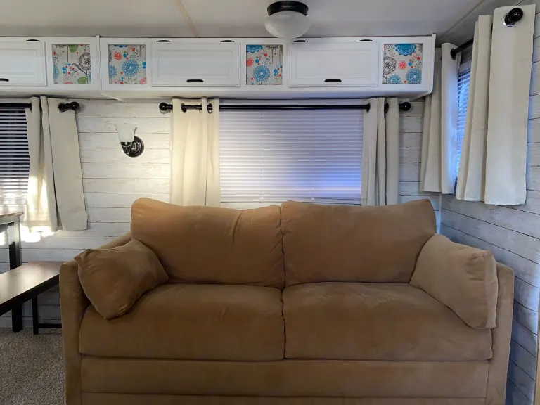 This is a stylishly remodeled tagalong RV that’s ready for your next camping trip! Pick it up and tow it yourself or we will deliver and set it up for you. This RV has a comfortable and plush queen size mattress in the master bedroom. The sofa sleeper in the living room converts to a queen size bed. Camper has a full kitchen and bathroom as well as a flatscreen TV in the living area. Everything is brand new. Plenty of closet and cabinet space as well. This RV is perfect for a family of four or a couple on getaway! Includes everything you need – linens, towels, kitchen ware and camping chairs. Simply bring your clothes and food!This camper is available for self tow or delivery within a 90 mile radius of where we are located in Cornwall New York.