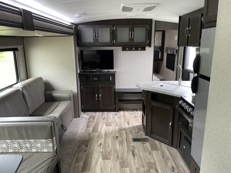 ATB Outdoors is excited to see that you are interested in renting "Taqhuamenon." This camper is a 2020 Keystone Springdale named after our favorite local waterfall and river. Please find exact descriptions below:Master: Private queen bed with storage closets.Bunks: Two bunksConversions: The dining table and couch also convert to beds for additional sleeping.Indoor Kitchen: Comes with pots and pans, coffee pot, toaster, dishes, utensils, knives, plates, bowls, sponges, broom. Also comes with microwave and stove top/oven.Entertainment: TV, Radio, CD player, Blue tooth StereoBathroom: Toilet, sink, shower, and toilet paperATB Outdoors only offers delivery, we do not allow pick-ups.Delivery: Delivery, setup and cleanup is a flat rate $150 within 50 miles of Curtis. Any mileage after that is $3/mile.Refundable Damage Deposit: $500During peak season (Memorial Day to Labor Day) we have a 4 night minimum. Starting September 7, 2021 we have a two-night minimum stay!Contact us through our web page for availability and too see our additional add-ons or savings packages!AbovetheBridgeOutdoors_comCosa è inclusoPlease let us know if you need any additional items such as linens, chairs, etc.Altre cose di cui prendere notaWe DO NOT deliver or pick up on Saturdays.