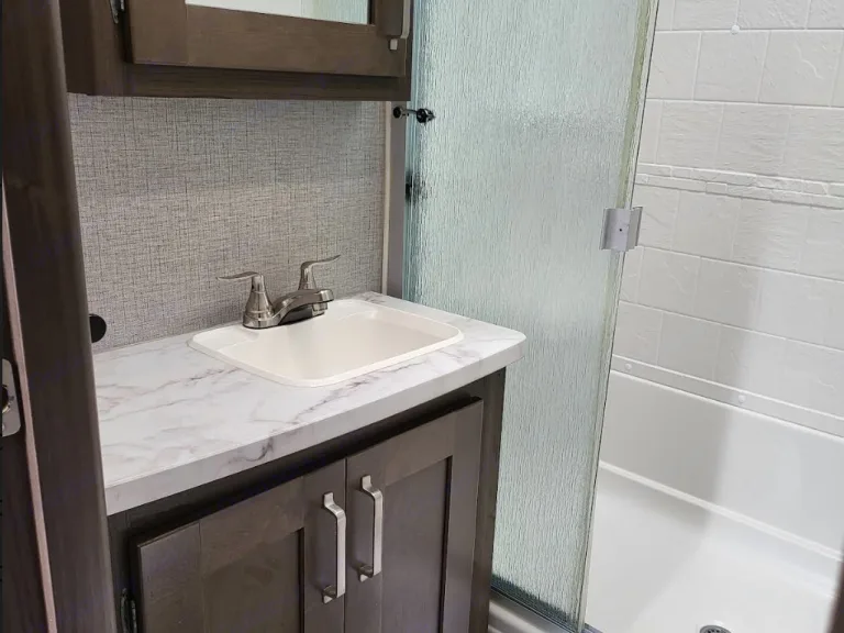 **Small Pet-Friendly***Inside, you'll find a dining table, a fully functional kitchen sink, a microwave, an oven, a range stove, and a refrigerator. It also includes an inside shower, toilet, and hot and cold water supply for your convenience.*Outside, enjoy an awning for shaded relaxation and an outdoor kitchen and shower. It also features a TV, radio, and solar power for off-grid living. The extra storage ensures you have room for all your gear.We’ve got you covered with essentials: