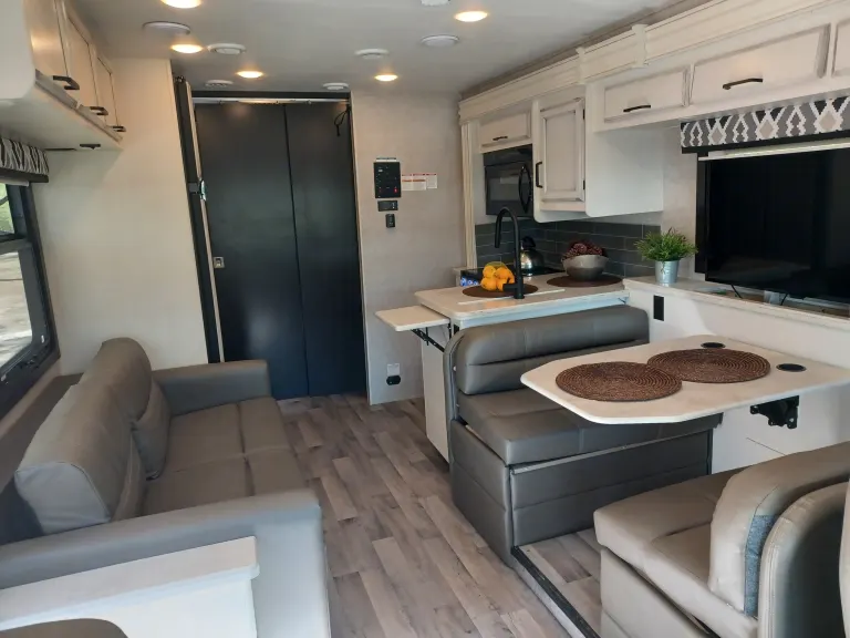 Hello! You will not find an RV that is easier to drive than this one. It is Brand NEW!!!!!! Rent our beautiful motorhome today and experience the freedom of cruising around in a fully contained home on wheels. This 27-foot RV has all the comforts of home including a bed that sleeps 8(4 adults+4 Children), Two A/C for those warm summer nights, a full shower and toilet, 3 burner stovetop, microwave, fridge/freezer, swivel seats with a fold out dining table, you name it! Everything you need contained within 27 feet of pure luxury and freedom. Hit the road in this brand-new Entegra A27. We are also able to deliver & pick up if needed, just send us a message and we'll get back to you right away!Altre cose di cui prendere notaThe pictures were taken a long time ago, there have been some wear and tear since then