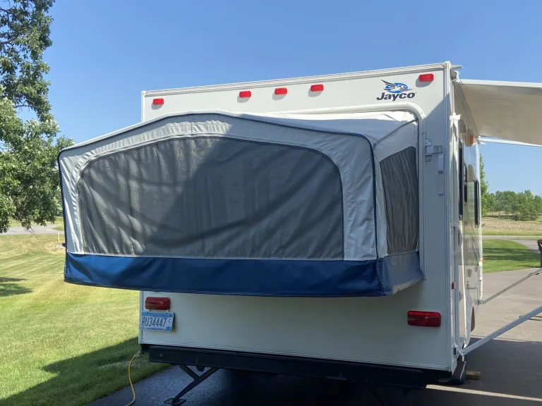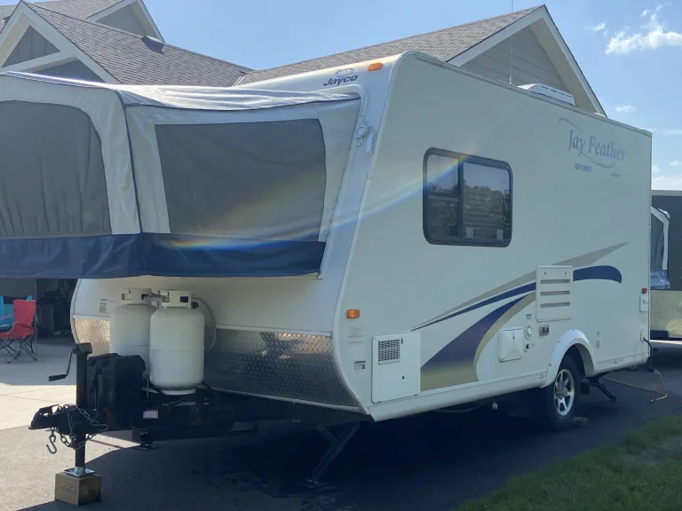 The Jay Feather Sport is an ultra-light weight expandable trailer that is perfect for SUV towing. It features two queen-sized beds, a dinette conversion and a sofa bed. The kitchen is fully stocked with cookware, utensils and place settings for four. Appliances includes a refrigerator / freezer, stove top and microwave. Camp chairs and other outdoor amenities are included.Heat for early and late camping is powered by propane. The electric AC is very cold for hot summer camping.The Jay Feather can be easily towed by most SUVs. The unloaded weight is only 2,995 lbs. Please check your vehicles towing capacity before booking.Small pets can be allowed for an additional fee and upon owner approval.Cosa è inclusoThe kitchen includes hand towels and washcloths, dishsoap, toaster, cookware, cutting board, knives, mixing bowls, measuring cups, can opener, wine opener, serving utensils, plates, bowls, glasses, cups and eating utensils (service of 4 adults + 4 kids). Paper towels, garbage bags and disinfectant spray are stocked; a broom and dustpan are included for your use.The bathroom includes hand soap, hand towels and RV toilet paper.Waterproof mattress covers are included for the two queen beds. Please bring your own bedding, pillows and bath towels.Outdoor amenities include 4 collapsible camping bag chairs, outdoor rug, canopy camping lights, lantern, 6 marshmallow roasting sticks and clothes line. A Weber Baby-Q grill, stand and grilling utensils can be included for an additional fee.A few favorite indoor and outdoor games are also included.RaccomandazioniWe enjoy all camping adventures including: State parks, County parks, Three-River District parks and Family-owned campgrounds. Deliver and setup may be available upon request. Altre cose di cui prendere nota2 night minimum rental.Waste tanks must be emptied prior to return; failure to do so will result in a $50 fee.For Spring and Fall camping with heat, propane tanks must be refilled prior to return. Propane for water heater and stove included for all other rentals.Please no smoking in our camper.Let us know if you have any questions or requests.