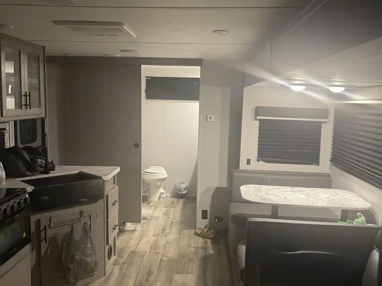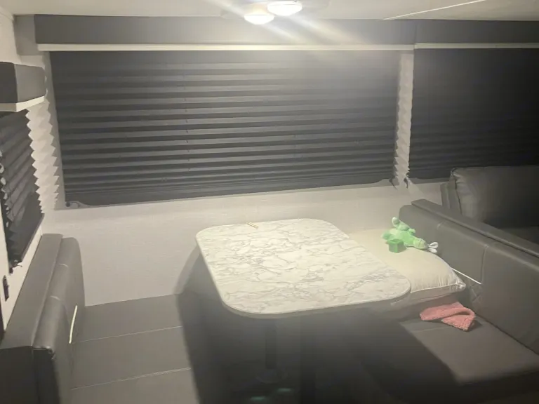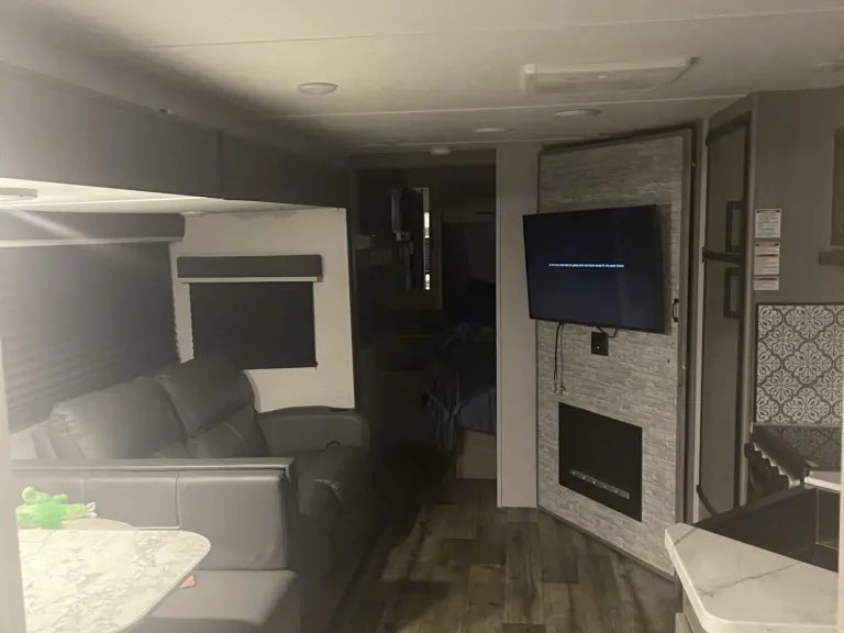 Enjoy peace and comfort away from home in the perfect space. Make memories with your family and enjoy the outside grill and fridge while you listen to your favorite football team. Play corn hole that’s hidden in the hideaway bin. You’ll find chairs there for lounging as well. Let out the 18 foot awning to enjoy the shade. Or sit inside at the perfect temp and enjoy the flames of the fireplace, while watching the best games. Behind the tv and fireplace you’ll find the perfect storage for all your game day snacks. When it’s time for bed watch tv from the comfort of your memory foam mattress. Need the rest room in the middle of the night? No worries you have the best bathroom a camper can offer. Spacious with double sinks. No arguing about who’s brushing their teeth first in the morning.RaccomandazioniOur favorite place is Port Saint Joe at Prinells Bayside Marina. It’s a quiet place, with a small sandy play area by the water for the children. Boats are welcome. Altre cose di cui prendere notaNo smoking cigarettes or vapes INSIDE.