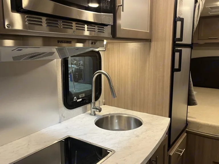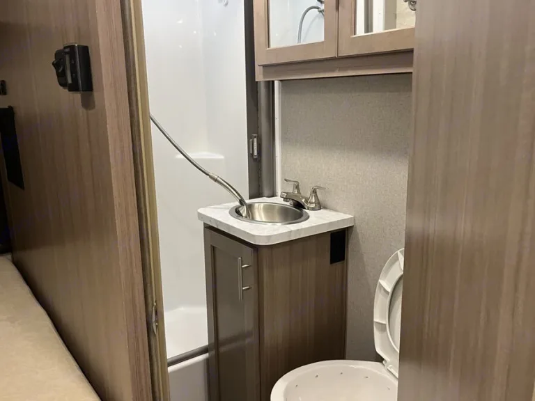 This a 23ft Adventurer 23 RB Class C motorhome model year 2024 on a Ford E 350 chassisThe motorhome is packed the with features and amenities. In addition to the usual items, the freezer/fridge (doors open left, or right), thermostat controlled ducted A/C and heater, water heater, cook-top, this RV has a microwave oven, power roof vent and a skylight in the bathroom, porcelain toilet, a satellite radio/cd player with bluetooth, connected to the back-up camera, an electric 15' awning with LED light strip, a tow package, a 4kW Onan generator and many other things.Cosa è inclusoInclude is Kitchen equipment Dish.