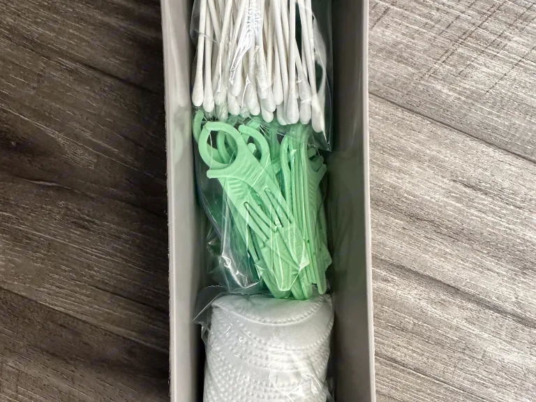 KITCHEN: 4 dinner plates, 4 smaller plates, paper plates, 4 cereal bowls, 4 large cups, 4 coffee cups, napkins, hot plate holder, dish towels, measuring spoons, measuring cups, dishwashing soap, dishwashing sponge, hand soap, cutting board, expandable dish washing rack, first aid kit, 1 paper towel roll, 3 bamboo cooking utensils, ladle, slotted label, tongs, 5 cooking knife set, silverware for 4, strainer, toaster, Keurig maker, Keurig cups, 2 mixing bowls/storage container, large pot with lid, small pot with lid, large frying pan, small frying pan, bottle opener/wine opener, can opener, trash can, trash bags, salt and pepper, olive oil.