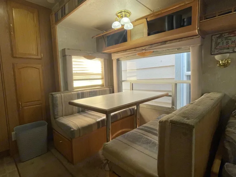 And a convertible dinette for maximum sleeping with a 30 amp hook up this unit has air conditioning and microwave