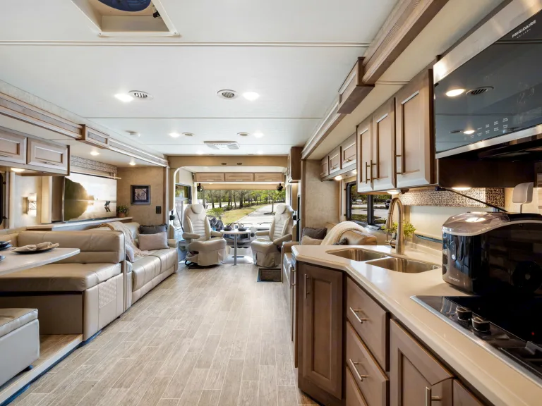 "Fully Stocked RV including all bedding". Come spend time with your family in this oversized Motor Coach and create memories with your family, our coach has four flat screens, 1 king bed and 1 queen and two pull-out full-size beds, walk in shower, overabundance of storage and closet space. We have fully stocked this Motor Coach for your enjoyment, Additional Deposit IS Requirerd FOR OUT OF State Travel, Please Send Email FOR Details. No animals of any kind on RV due to severe allergies.Cosa è incluso• Bedding, Sheets, Pillows, Towels, Separate ice maker, induction pots and pans, real silverware, plastic silverware, grill, all barbecue utensils, shampoo, body wash, conditioners, separate diametric cooler, knife set, Keurig, paper towels, plates, bowels, drinking glasses, wine glasses, shakers, bullet, all kitchen utensils, games, bug spray, first aid kit, spices, toaster, cleaning supplies, outdoor chairs, outdoor folding table, outdoor area rug and so much more!RaccomandazioniWestgate River Ranch, Margaritaville Auburndale, Black Prawn, Disney Wilderness.