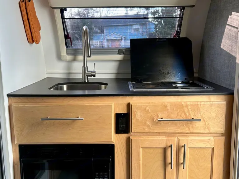 Introducing Little Betty: Your Ultimate Travel Companion! **Pets are welcomed**Meet Little Betty, the charming powerhouse of adventure in the world of travel trailers! Lovingly nicknamed by your Host, Little Betty is not your average teardrop trailer; she's a Little Guy Mini Max with maximum comfort and convenience packed into her compact frame! Whether you're a seasoned camper or just dipping your toes into the camping community, Little Betty promises to elevate your travel experience to new heights while ensuring your utmost comfort along the way.Step inside and prepare to be amazed! Little Betty boasts a spacious dinette area that effortlessly transforms into a cozy queen-sized bed, making every night on the road feel like a dream. With a fully-equipped kitchen featuring a sink, two-burner propane stove top, microwave, and refrigerator, whipping up delicious meals on the go has never been easier.But wait, there's more! Little Betty doesn't skimp on the amenities. Say goodbye to roughing it with her convenient wet-bath (complete with a shower and toilet), air-conditioning, heater/propane furnace, digital thermostat, television, radio/CD/DVD player, and ample storage space for all your essentials. Plus, with features like outdoor storage, an outdoor shower, and bike racks, adventure is always at your fingertips.Technical specs? Little Betty has those covered too! Equipped with a 7-prong trailer plug and a Bluetooth brake controller, ensuring a safe and smooth journey on the road. Little Betty also comes with a 30 AMP electrical connection for shore power and generous sewage/water tanks, you can roam freely without sacrificing modern comforts. Just ask your Host, who traversed the country from sunny South Florida to picturesque Washington and back, with two medium-sized dogs and a cat in tow, all while enjoying unparalleled comfort and convenience.Looking for tips to make the most of your travels with Little Betty? We've got you covered:-Carry extra fuel for your tow vehicle to ensure smooth sailing on the open road.