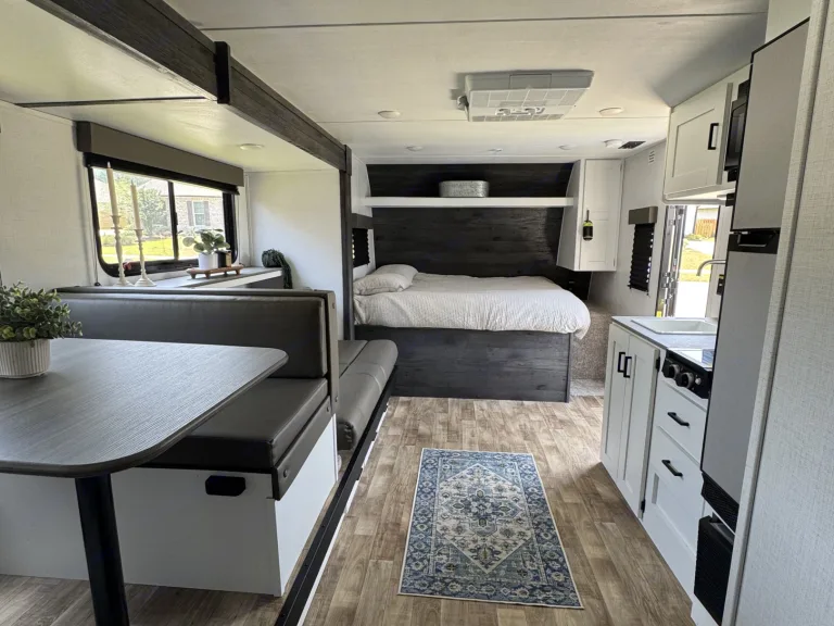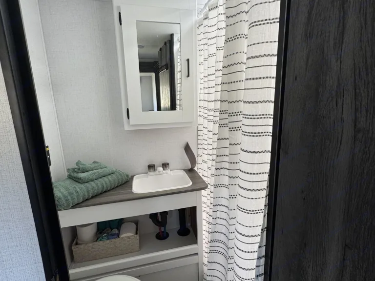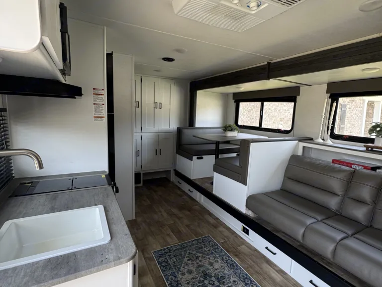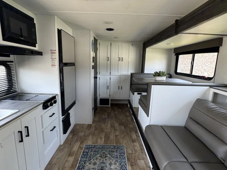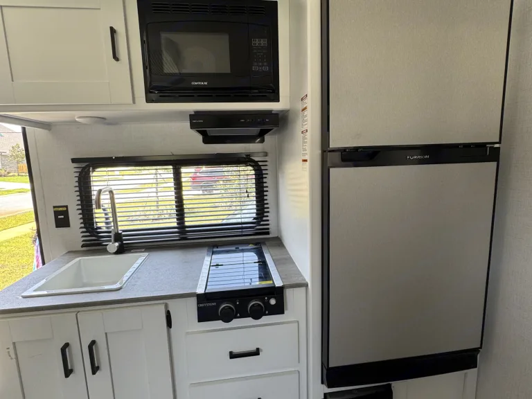 Enjoy the outdoors without compromising comfort in this hideout trailer. Plenty of space for 4 and the convenience of a lightweight portable home away from home makes it simple to find that special spot to make memories. All of the same amenities in your larger RVs but more affordable and less of a hassle traveling from destination to destination. Cosa è incluso• All kitchen essentials