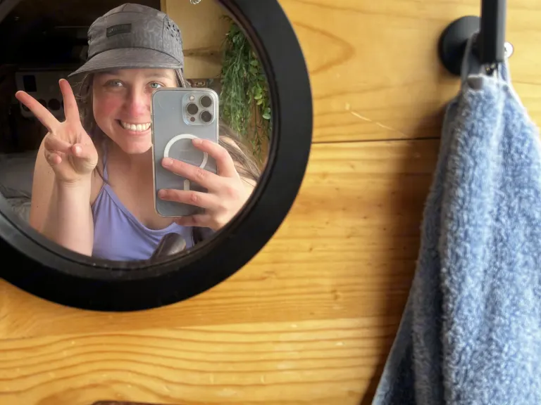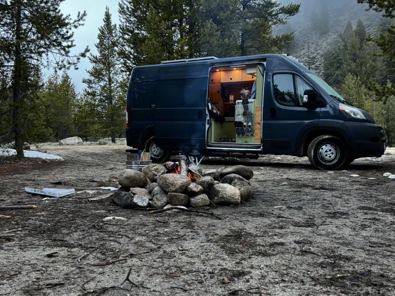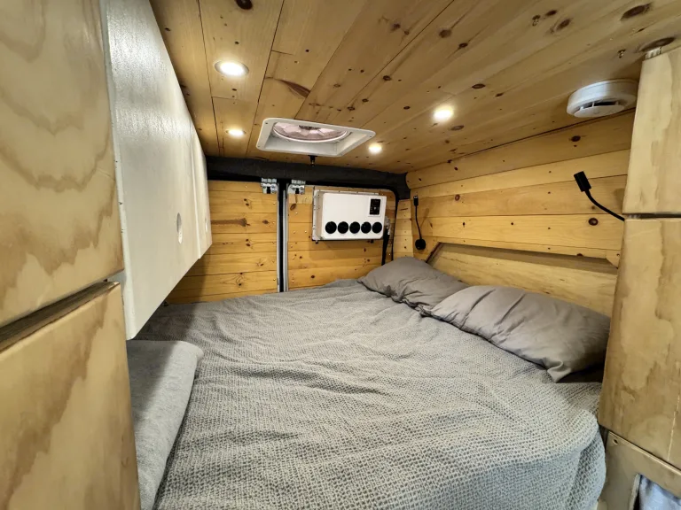 This van is our quiet place. Built for real life—after-work road trips, dawn rides, rainy movie nights, and the deep, still sleep you only get in a dark, quiet room. The walls are fully insulated, and the no-window design keeps it calm, private, and climate-cozy. Scout curls at our feet, Cora reads, and I make coffee without waking anyone. It feels like a little wood cabin—on wheels.We call it the studio. Starlink (usable while driving) means meetings on mountain passes and playlists in the desert. Electric AC keeps the cabin cool in July; when the wind kicks up in Stanley, the solid cab door turns everything peaceful. At night, we dim the LEDs, pull down the projector screen, and let the roof fan whisper.Power just works—no generator, no shore power needed. A ~7 kWh battery bank and ~400 W solar run Starlink, AC, lights, laptops, and fridge. Even on month-long trips, we’ve never dipped below ~40%. Outlets and USB ports are where you need them—no hunting for a plug or a signal.The layout is simple: a full-size bed with deep storage, bedside charge ports, and warm wood everywhere. The kitchen has a two-burner stove, sink, cutting board, and space for your favorite skillet. A clean emergency toilet is tucked away (optional travel bottle included). Cabinets and bench storage keep clothes, gear, and pantry items organized. A bug screen covers the slider, and there’s room for a bike inside.Driving is easy—front-wheel drive, backup camera, and a nimble wheelbase for trailheads, tight city spots, and quick grocery runs. Pick up in Garden City (near Boise/Eagle). I’ll give you a short walkthrough, share our best camping spots, and send you with a quick-start guide.Who loves this van