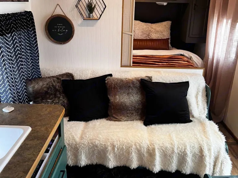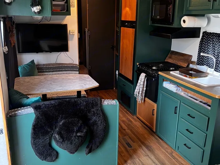 Welcome to our newly remodeled 2007 Jayco camper, the perfect getaway on wheels for your next adventure! This cozy camper has been thoughtfully updated with modern amenities and stylish decor to ensure a comfortable and memorable experience.Step inside to find a charming living area with a comfortable seating area that converts into a bed, perfect for relaxing or enjoying a meal. The kitchenette is equipped with all the essentials including a sink, stove, and mini-fridge, making meal prep a breeze.The bedroom features a queen-sized bed with storage space for your belongings. The remodeled bathroom offers a shower, toilet, and sink for your convenience.This camper is perfect for couples or small families looking to escape the hustle and bustle of everyday life. Don't miss out on the opportunity to experience the great outdoors in style with our remodeled camper. Book your stay today and start making memories that will last a lifetime!Cosa è inclusoCamping chairs and table, fresh linens, coffee maker, and dishes and utensils!Altre cose di cui prendere notaPets welcome!! No smoking inside. And be respectful.