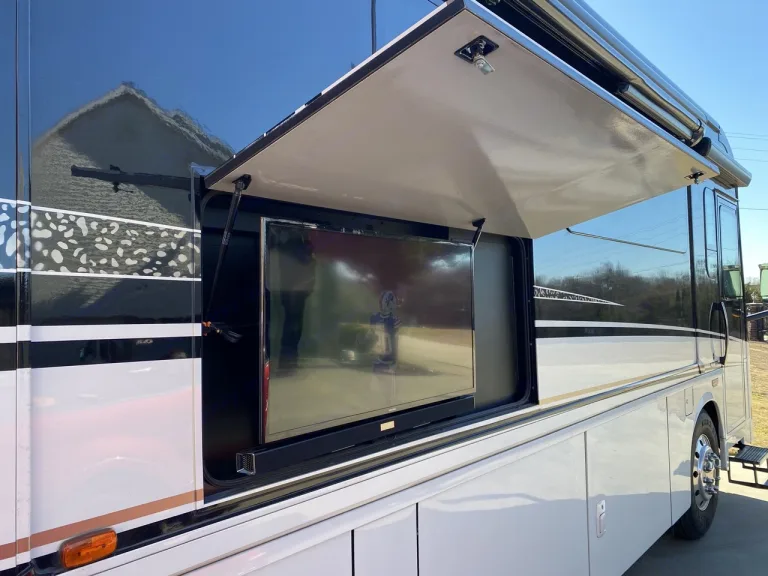 The full-size refrigerator/freezer and an extra freezer/refrigerator in a storage compartment. It has an Onan 10KW diesel generator fueled by the main tank that makes boon-docking easy. It has all the luxurious comforts you may want. There are 3 TVs, and sound bars with sub woofers. The Aqua Hot provides unlimited hot water and heat to the coach. There are multiple large storage compartments for stowing all your camping and vacation supplies.