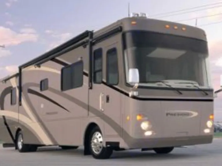 Equipped with a 300 Mercedes (Detriot) diesel engine with Jake brake makes getting up and down the hills easy. 4 slide outs create spacious interior. Leather upholstery, fold-out bed and futon couch up front for extra beds .Queen master bed with split private toilet and separate shower. solid surface counter tops and ceramic tile kitchen. Back-up cameras, under-mount TV.