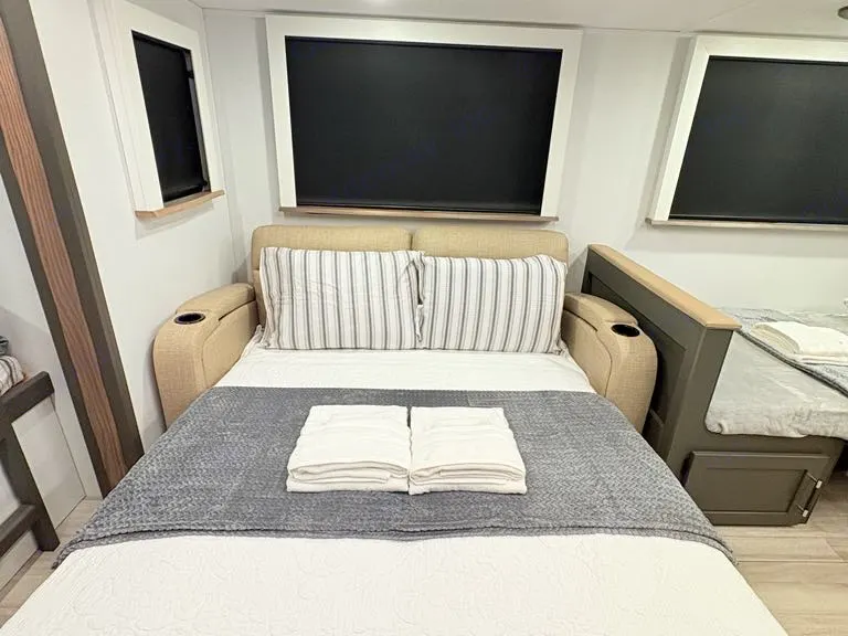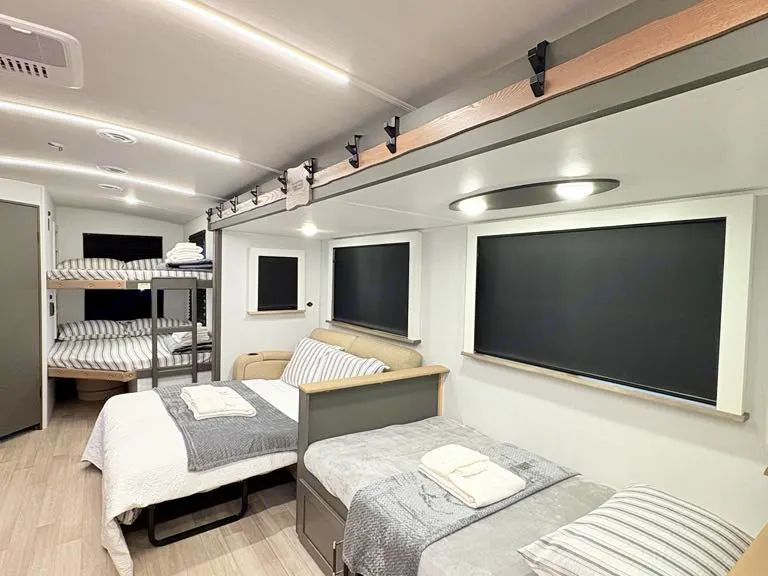 Thank you for choosing the Ideal Home camper. To ensure a safe and comfortable experience, please follow the guidelines below. No smoking or vaping is allowed inside the camper. Any evidence of smoking will result in a $250 cleaning fee. Do not smoke near open windows or doors. No candles, incense, or open flames are permitted inside. This is our family’s personal camper—please treat it with care. No vandalism, reckless behavior, or intentional damage will be tolerated. Pets are allowed only with prior written approval, and a pet cleaning fee may apply. Only RV-safe toilet paper (provided) may be flushed—no wipes, feminine products, or trash. Do not climb on the roof or tamper with any exterior components. Follow all instructions for using the fridge, microwave, stovetop, A/C, or heat. If you’re unsure how anything works, please contact us before using it. Two outdoor chairs and a rug are included—return them clean and dry. Use the awning with care and close it during strong winds or when unattended. Damage to the awning will be charged. A fire extinguisher, smoke detector, and first-aid kit are onboard—notify us if used. Return the camper in reasonably clean condition: remove all trash, rinse dishes, and sweep any sand or debris. Do not overfill the black or gray tanks—you are responsible for emptying them before checkout unless arranged otherwise. Overflows may result in extra charges. Please avoid letting food, grease, or hair go down drains. Keep the entry steps clean and secure at all times. Do not hang towels or clothing over vents or windows. Outdoor cooking is allowed but must be kept away from the side of the camper. Respect campground quiet hours and local rules. Let us know if anything breaks or malfunctions—we’re here to help. Thank you for keeping our camper safe, clean, and ready for the next guests. We hope you have an amazing trip! Need help during your stay?