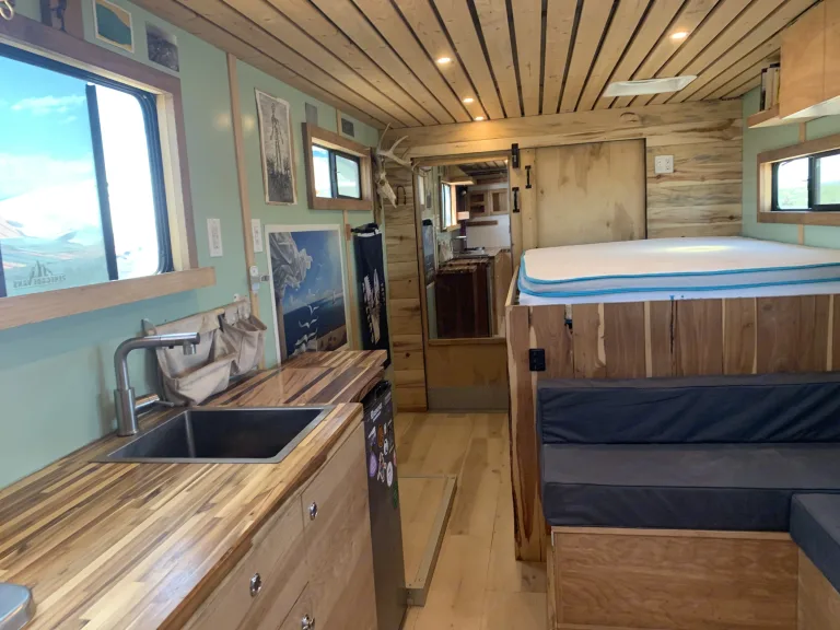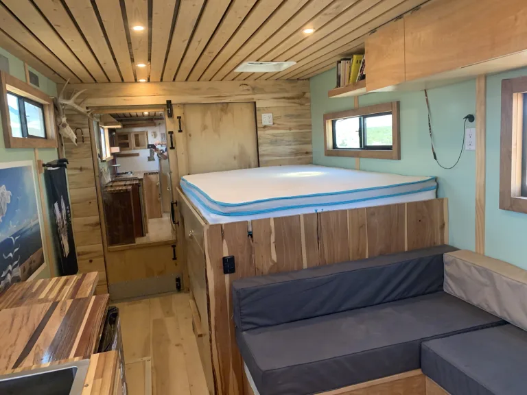 Being a box truck this build is pretty roomy. We used to take this on trips with two people and three dogs all the time and had plenty of room. Plenty of storage under the benches and bed and in overhead cabinets. It has a roof deck running the length of the vehicle, we used to all hang out and grill up there and there is a rug fastened to it as well for stretching in the morning! I also mounted a pull up bar to the back of the roof rack so you can door pull-ups off the back of the van. It has a shower with water that gets plenty hot. The box is insulated well, keeping it cool in the summer and warm in the winter. It has 2 Max air vent/fans and a propane heater for climate control. It has a L shaped lounger area with a table top on a Lagun mount swivel, so it can fold up out of the way. It has both a fridge and a freezer. 2000 Watt inverter with several AC outlets and USB ports for charging. I lived in this thing for the past 3 years, I also ran a business building out camper vans, and this rig is the most comfortable of all the ones I’ve built in my opinion. The truck is a 2001 E450 7.3 PowerStroke Diesel,. In the front it has an LCD screen with Apple Car Play/Android Audio.. It also has a tow hitch if you need it. It is about 11ft 4inches tall, which has not been a problem as far as overpasses go, some fast food drive thrus it does not fit under however. This truck is a dually RWD, with all the weight in the back I’ve rarely ever gotten stuck, but there are 2 maxtrax on the roof rack just incase.Cosa è incluso2 camping chairs, 2 full propane tanks for hot water, furnace and cooking stove. Cooking utensils and pans. Pillows and blankets. Bookshelf of reading material. Set of maxtrax.RaccomandazioniThe Great Sand Dunes National park, San Luis Lakes, and Blanca Wetlands are all within 5 miles of the pickup location. Mt. Blanca is an amazing 14er hike with a lake close to the top across the way from where I live, and there is plenty of BLM land in front of Blanca, I’ve camped on it for free more times than I can count. The valley in general is rich with free camping spots, I can send you a bunch of GPS pins to get you started. There are also various hot springs in the area. The San Luis valley is beautiful and you could easily spend a week here seeing everything it has to offer. I’d also recommend a trip down to Toas to see the Earthship Headquarters. Crestone and Del Norte are also cool towns worth checking out.Altre cose di cui prendere notaDIESEL FUEL ONLY!!!! Don’t worry I’ll reiterate this.
