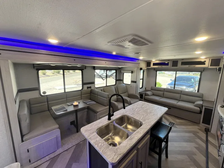 Altre cose di cui prendere notaTrailer can not be delivered to a location where the renter is not present. The renter must be present for key exchange and full handoff. Full set up, walk through and pass-off can take up to an hour. Please be mindful and considerate of this time.If you do not have a vehicle qualified to tow this travel trailer, we offer rental of a 2019 Dodge RAM 1500 with a 12,250 lb towing capacity. Inquire for details