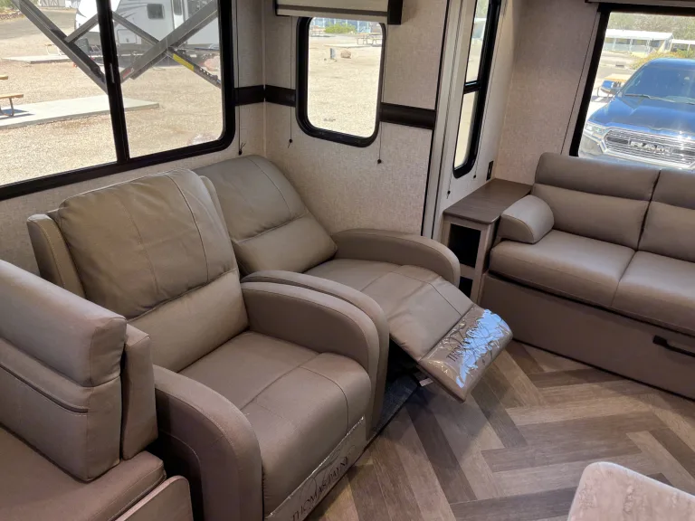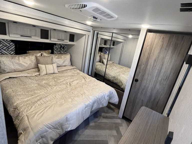 Experience camping luxury and comfort on your next adventure with the Crossroads Zinger 340RE! This spacious travel trailer features a cozy living area with a 72" sleeper sofa, two recliners, a fireplace, and a 42" TV. The fully-equipped kitchen includes a refrigerator, microwave, oven, crockpot, nespresso machine, kitchen island, and wine cooler.The bedroom offers a king-sized bed with ample storage. Bathroom is also spacious with plenty of storage space, stocked with towels.Trailer will include a weight distribution hitch.If you plan on using the stove, oven or heated water, they require propane. If less than a full tank of propane is used, there will be no charge. For every full tank, its a $30 fee deducted from security deposit.Absolutely nothing goes in the toilet except for RV toilet paper. Any evidence of paper towels, regular toilet paper, feminine products, baby wipes, or flushable wipes will result in a $200 deduction from security deposit.Delivery:Any fees associated with delivery(park entry etc) will be paid upon delivery or deducted from security deposit. Delivery beyond 10 mile distance will be considered, costs are $2.50/mile ALL Ways. Example: a destination that is 50 miles from trailer parking would be 50 miles there and 50 miles back for drop off x2 for pickup = 200 miles x $2.50. Total would be $500.Minimum fee for delivery is $150 which does not include water tank fill or sewage tank dump, each of these services are an additional $50Cosa è inclusoAmple bedding for multiple guests