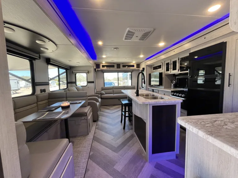 • Don't forget to refill propane and water tanks as needed to avoid running out during your trip.Don't drive the RV off-road or in areas where it's prohibited to prevent damage to the vehicle.