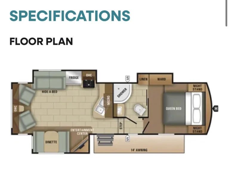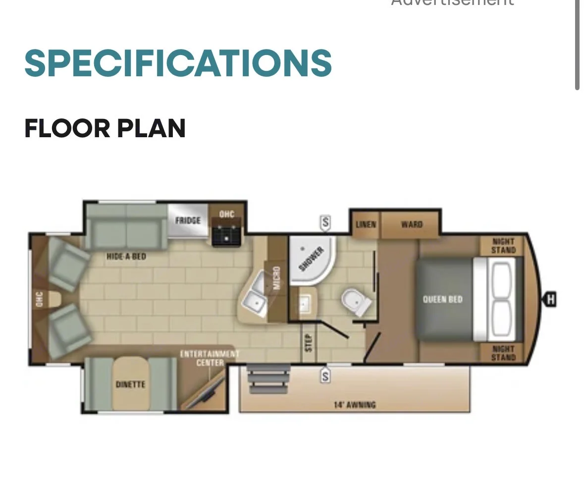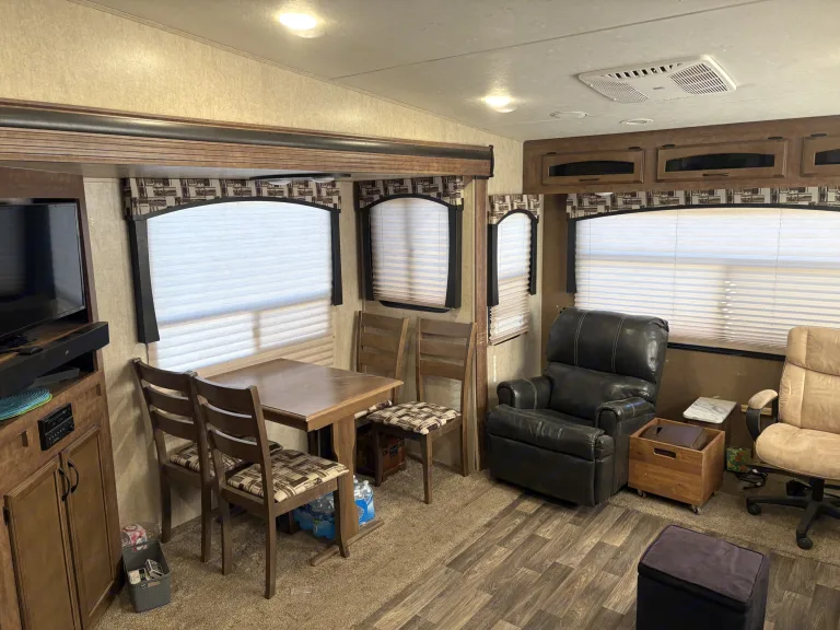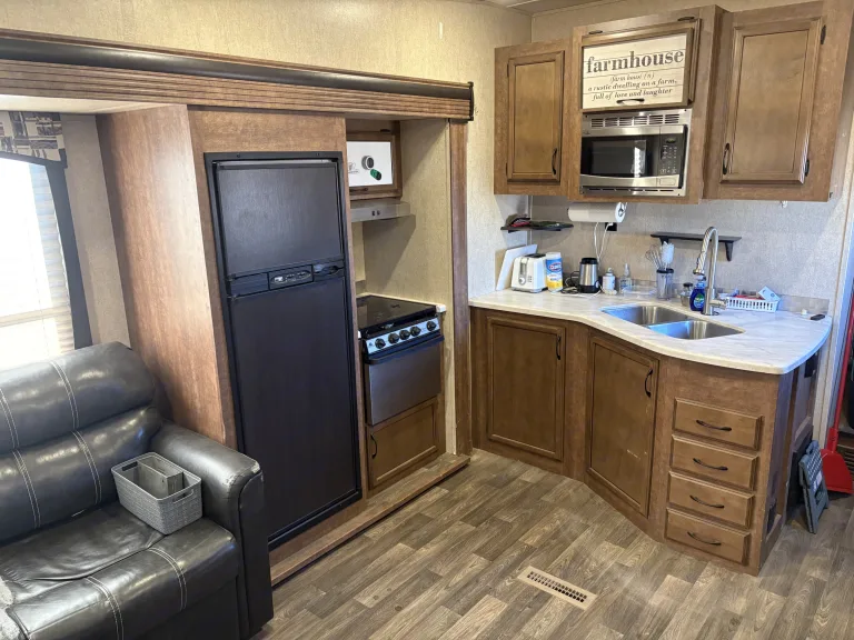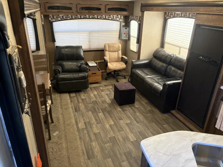 Unwind in comfort: this spacious fifth wheel offers dual slide-outs for ample room.