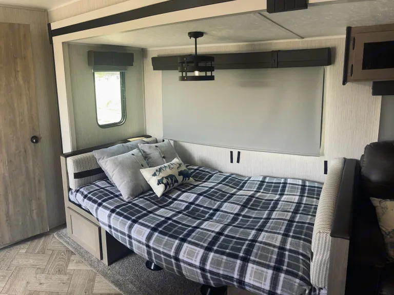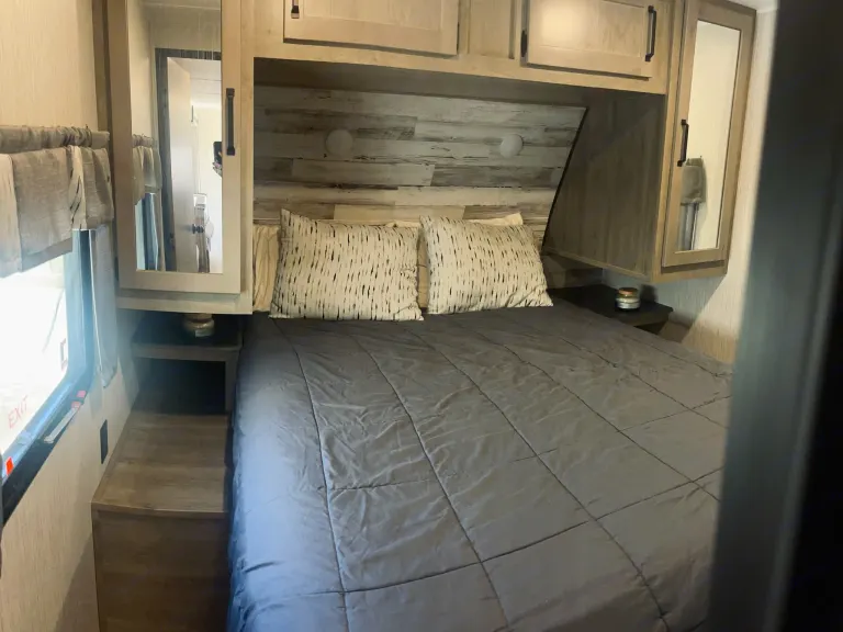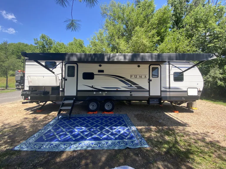 Enjoy the perfect blend of comfort and convenience in our beautifully equipped 2022 Puma Palomino 28Bhss! Designed for families and groups, this travel trailer sleeps up to 9 guests and features a large slide-out for expanded interior space—perfect for relaxing and making the most of your getaway.10% off nightly rate for first responders/veterans/nurses. Please message for discount code.Sleeping Arrangements:Private front queen bedroomSeparate bunkhouse with multiple beds for kids or extra guestsFull-size convertible dinette for additional sleeping spaceComfortable Living Area:Spacious interior with large slide-out for extra roomTwo large recliners for relaxing indoorsElectric/gas heated fireplace adds warmth and ambianceIndoor/outdoor Bluetooth speakers and USB ports throughout for charging and entertainmentFully Stocked Kitchen & Pantry:Gas range, oven, microwave, and full-size refrigerator/freezerLarge standalone pantry—ideal for extended staysCookware, utensils, and essentials includedTwo Entry Doors & Full Bathroom:Full bathroom with private exterior entrance—perfect for easy outdoor accessModern Comforts:Ice-cold A/C, heater, and blackout shades for a great night’s sleepFlat-screen TV and WiFi range extender/booster for remote work or streamingOutdoor Living Perks:Outdoor grill station and mini fridgeOutdoor showerPower awning creates a shaded lounging areaHassle-Free Delivery & Setup: