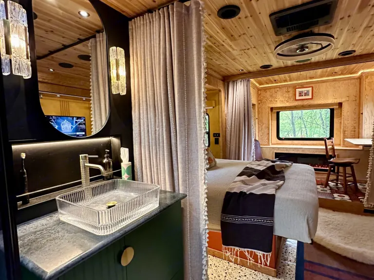 Delivery Included within 20 minutes of Nashville – Stress-Free Setup!Experience refined comfort with complimentary delivery, full setup, and teardown within 20 minutes of Nashville. Simply arrive — everything will be ready for you to step into effortless luxury.Introducing the GreenLight Express — a 43-foot, Scandinavian-inspired rolling sanctuary, newly remodeled with meticulous attention to every detail. Plush leather seating, a queen-sized retreat, a mid-century dining suite, and curated furnishings create an atmosphere of modern tranquility.The fully appointed kitchen is stocked with everything needed to craft memorable meals, while plush towels, fine linens, and thoughtful amenities ensure an uncompromising stay. (Special requests? We’re happy to accommodate.)Whether you’re seeking a serene lakeside retreat, sophisticated guest quarters, or a premium VIP experience for weddings, filming, or events, the GreenLight Express delivers unparalleled style and ease.Custom concierge services are available to elevate your experience even further.Let us create something unforgettable for you — please reach out with any questions.Cosa è inclusoThis is a luxury rental that will include EVERYTHING needed for a memorable vacation or event. Please let us know if you require anything specific so we can verify availability or check options.RaccomandazioniSome of our favorite spots within 20 minutes of Nashville (and include FREE delivery):Elm Hill Marina & RV Resort