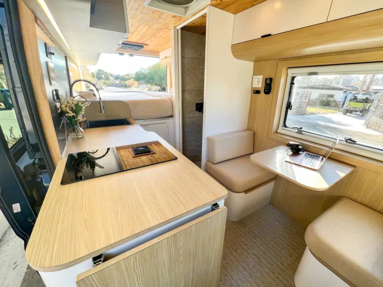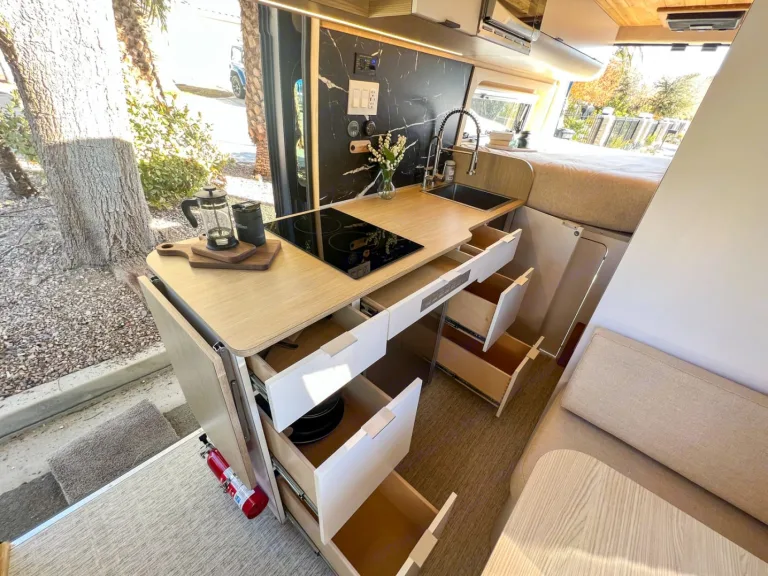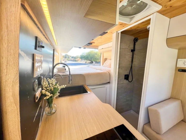 Don’t let the plates fool you—this van doesn’t actually stink. In fact, it smells like pine trees, ocean breeze, and freedom (with a hint of fresh coffee). Stink is a 2022 Dodge Ram ProMaster that’s road-trip ready, pet-friendly, and packed with everything you need to roam in comfort and style.Whether you're chasing sunsets, mountain mornings, or just a weekend escape, Stink is your ticket to the kind of adventure that stays with you.For those toasty summer afternoons or chilly mountain mornings, Stink’s got your back with solar-powered air conditioning and heating, so you can stay cozy or cool no matter the weather. The full off-grid setup means you're not tied to hookups to live comfortably.This van doesn’t just look good—it’s built for real adventure. You’ll find a comfy full-size bed, a hot indoor shower (with actual water pressure!), and a fully equipped kitchen with a 3.3 CU refrigerator, stainless steel sink, microwave, and 2-burner induction cooktop. Powering it all is a solid 400Ah lithium battery and 400W solar system, plus a 40-gallon fresh/grey water setup and a 4-gallon water heater. Translation: you can go off-grid without giving up the good stuff.Other smart features? Tons of storage, a two-seat dining nook, multiple table extensions, LED lights, USB plugs, and custom window coverings so you can sleep in or stargaze in peace.Cosa è inclusoWhat's Included:1 Pot) + 2 Frying Pans (1 small, 1 Large)Plates, bowls, drinking glasses, and coffee mugsUtensils, chopping knives, cutting boardSpatula, tongs, can openerElectric kettleDish towels, washcloths, mini broom & dustpanPaper towels, garbage bags, spongesFresh linens, pillows, bedding, and towelsAltre cose di cui prendere notaOther Things to Note:Pick-Up & Drop-Off: Rentals are calculated on a 24-hour basis.Flexible pick-up/drop-off times—just coordinate directly with the owner.Mileage: 100 miles per night included. Extra miles charged at $0.55/mile.Security Deposit: $1,000–$1,500 authorization held 2 days before your trip, released (minus fees) within 7 days of return.