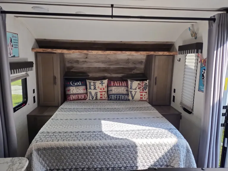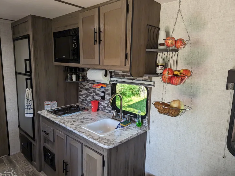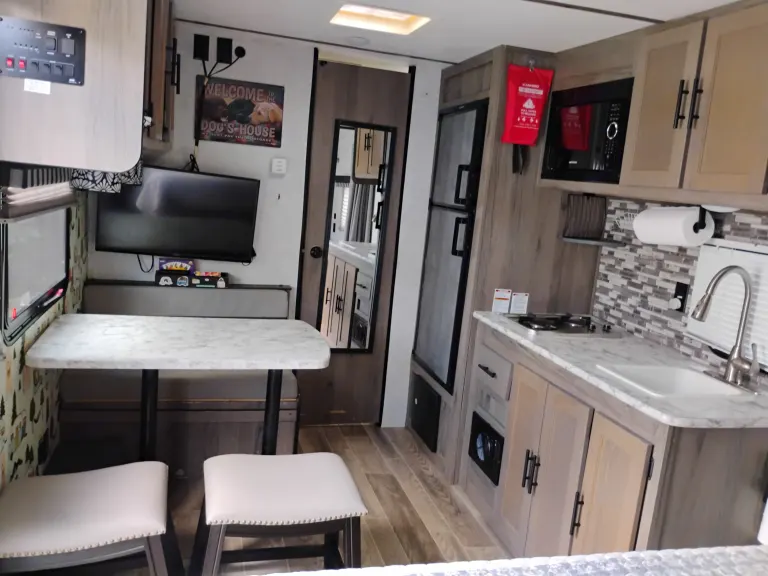 Our host Mary was helpful throughout our experience, helping us with hitch and hook up information. The camper was extremely clean and she gave me a thorough walk-through on all of the amenities. This RV has a lot for its size like a queen size bed, and 20 gallon, gray and black water tanks. The shower is full size and it had a large TV, and you can’t beat the price!
