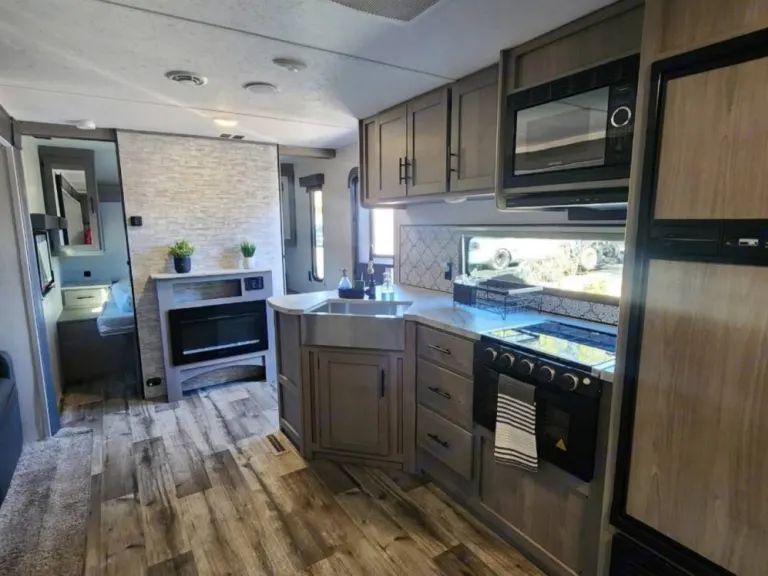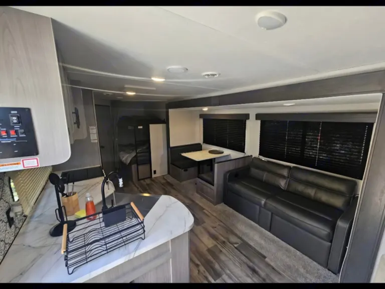 This beautiful coleman lantern is clean, modern, and comfortable! Private master bedroom with a queen bed , pull out bed, dining bed, and bunk beds comfortably sleep 8!Kitchen includes sink, oven, microwave, freezer, stove, fridge, plenty of cabinets, dining table, Couch and even a fireplace!Bathroom has a shower, toilet and 2 doors, one leading directly outside and one leading into the living area!Pillows, sheets, blankets, cookware, utensils, and bathroom essentials available upon request.Cosa è incluso•Generator will be an additional charge $75Altre cose di cui prendere notaNo smoking / Vaping of any kind inside Trailer