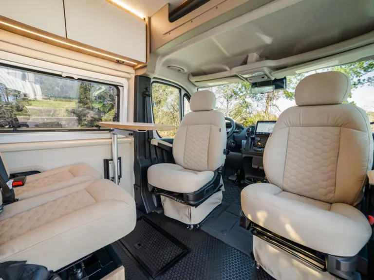 2.8 kW Onan quiet gas generator (National Park approved), 200W solar panel, dual AGM batteries, and 1,000W pure sine inverter keep you powered off-grid with ease.Driving Experience & Tech: