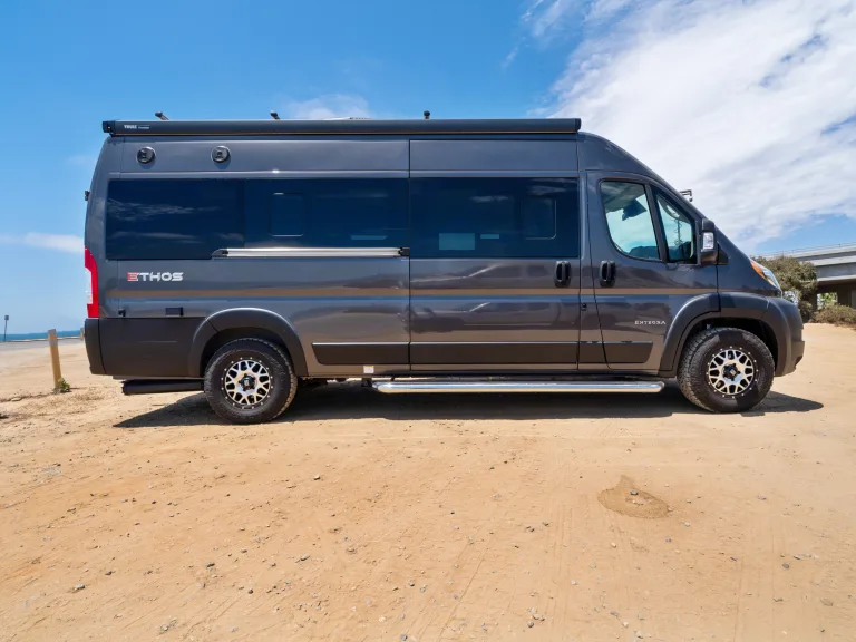 EngineEnginePentastar VVT / V6Chassis BrandProMasterChassis Model3500Cylinders6Horsepower276 hp @ 6,400 RPMTorque250 ft-lbs. @ 4,400 RPMDisplacement3.6 litresFuel TypeGasFuel RequirementsRegularCarburetion TypeFuel InjectedTurbochargedNoSuperchargedNoTransmissionTransmission Type9 Speed AutomaticOverdriveYesDrivelineDriveline Type4X2DimensionsLength20.92 ft. (251 in.)Width6.92 ft. (83 in.)Height9.25 ft. (111 in.)Interior Height6.17 ft. (74 in.)Wheelbase13.25 ft. (159 in.)WeightTowing Capacity3,500 lbs.Gvwr9,350 lbs.CapacitiesFuel Capacity24.0 gal.Holding TanksNumber Of Fresh Water Holding Tanks1Total Fresh Water Tank Capacity27.0 gal.Number Of Gray Water Holding Tanks1Total Gray Water Tank Capacity14.5 gal.Number Of Black Water Holding Tanks1Total Black Water Tank Capacity13.0 gal.Propane Tank(s)Number Of Propane Tanks1Total Propane Tank Capacity6.0 gal.Total Propane Tank Capacity20 lbs.2023 Entegra Coach Ethos RVs for Sale Near YouDoorsNumber of Doors1Sliding Glass DoorNoSlideoutsNumber of Slideouts0AwningNumber of Awnings1Awning Length13 ft. (156 in.)Power Retractable AwningYesScreened RoomNoKitchen / Living AreaKitchen / Living Area Flooring TypeVinylKitchen Table ConfigurationPedestal TableKitchen LocationFrontLiving Area LocationCenterOven / StoveLayoutOven / StoveNumber Of Oven Burners2Overhead FanNoMicrowave OvenConvectionYesRefrigeratorRefrigerator SizeCompactRefrigerator Power ModeElectricSofaNumber Of Sofas0Recliners / RockersNumber Of Recliner / Rockers0BedsMax Sleeping Count2Number Of Bunk Beds2Number Of Double Beds0Number Of Full Size Beds0Number Of Queen Size Beds0Number Of Convertible / Sofa Beds0Master BedroomBunkhouseNoBathroomNumber Of Bathrooms1Bathroom LocationRearToiletToilet TypePlasticToilet LocationRearShowerDoor TypeCurtainShower LocationRearBathroom SinkBathroom Sink LocationRearBathroom Medicine CabinetBathroom Medicine Cabinet LocationRearBathroom MirrorBathroom Mirror LocationRearBathroom Vent / Fan SystemBathroom Vent / Fan System LocationRearWheelsWheels CompositionAluminumFront Wheel Width0.5 ft. (6 in.)Rear Wheel Width0.5 ft. (6 in.)Number Of Axles1TiresFront Tire (Full Spec)LT225/75R 16ERear Tire (Full Spec)LT225/75R 16ESpare TireSpare Tire LocationExterior MountedBrakesFront Brake TypeHydraulic DiscRear Brake TypeHydraulic DiscRear HitchRear Hitch TypeReceiverSeatSeat TypeBucketSeat MaterialLeatherPower Adjustable SeatYesSwivel SeatsYesSeat ArmrestsYesSeat SpecificationsNumber Of Seats2Number Of Rows1BatteryBattery Power ConverterYesPrewiringAir Conditioning PrewiringYesCable PrewiringYesPhone PrewiringNoHeat PrewiringYesTV Antenna PrewiringYesSatellite PrewiringYesWasher / Dryer PrewiringNoSolarYesBack-Up CameraYesAir ConditioningAir Conditioning TypeAutomaticAir Conditioning13,500 BTUs*