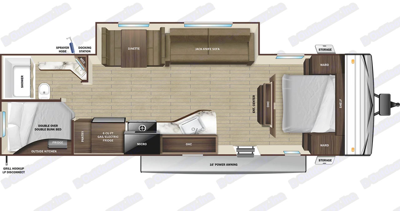 Perfect for families, this spacious RV sleeps 7 with comfortable full-over-full bunks.