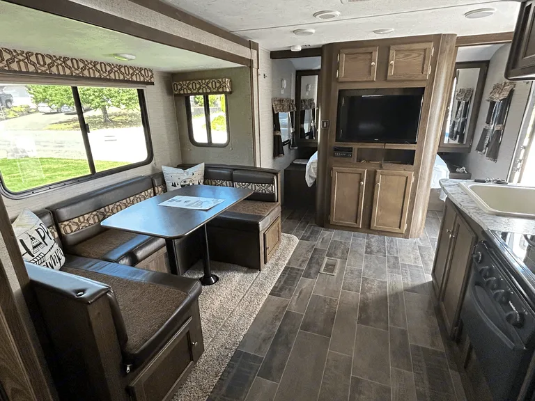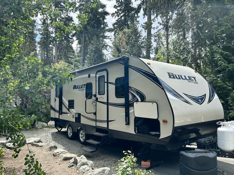A great outdoors adventure...Fully equipped with a full bathroom/shower/tub, microwave, fridge, sink, tv, outdoor shower, air conditioning (with plug in), heat (propane)Sleeps 5-8 people: (5 adults very comfortably, or up to 8 with small kids to share double beds)