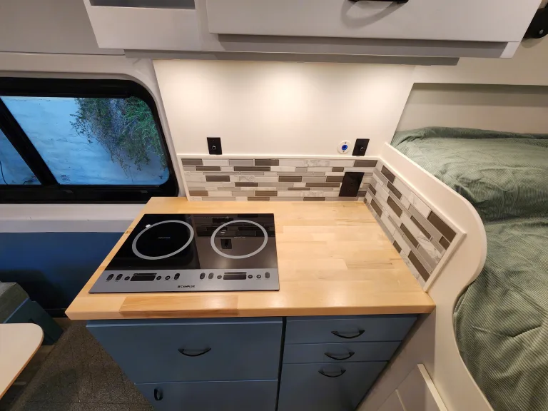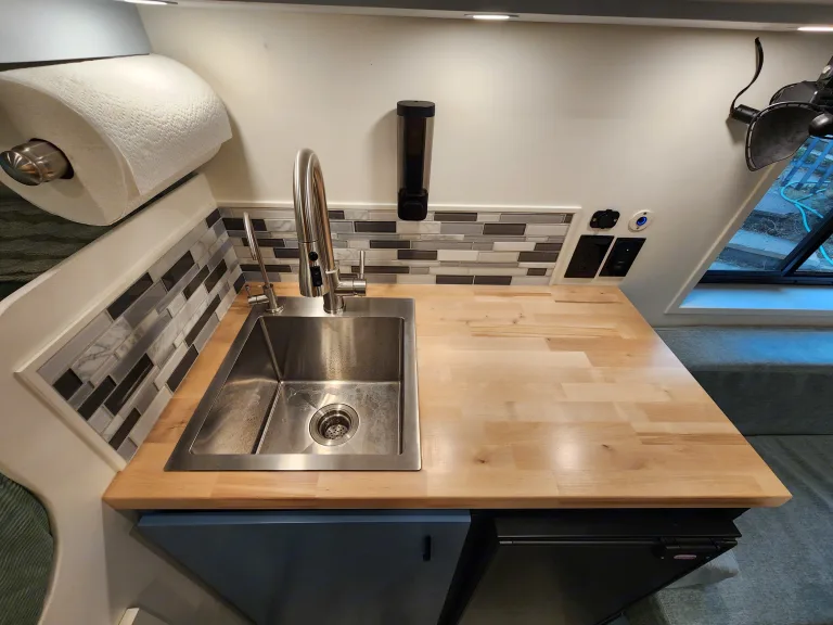 The van is well finished. Great craftsmanship. The bed is very comfortable. The van handles well and is in great condition. More water and power than we could ever need.