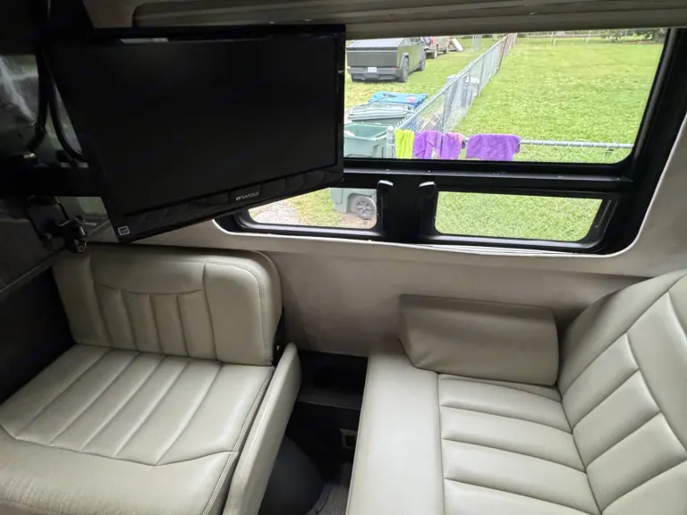 Great for traveling, touring, camping and so much more, this beautiful Airstream Mercedes Class B RV Camper Van is Powered by a V6 Turbo Diesel which is as easy to drive as an SUV and has excellent range (400+) and gas mileage (18.8 MPG). The interior is appointed in Ultra Leather upholstery and is very plush and luxurious. This rig is fully outfitted with everything that you need for your home away from home. It features an Audiophile grade stereo system. 2 separate lounge areas with a table. A comfortable sofa that folds into a King Size bed as well as a twin bed over the cab area. 2 tvs with DVD players and streaming capability. Bathroom with toilet, sink, and shower. Galley with sink, stove and refrigerator. Heat and air conditioning. Fully off grid capable with water tanks, solar, Generator and MaxxAir Fan. Day and night shades. It features overhead storage compartments for storing your clothes and any extras your bring along. This is the ultimate luxury roadtripper.