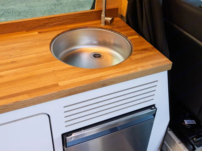 The simplicity is the beauty of this van...no hook ups to mess with! There is a 40-gallon water tank and for extended rentals we provide a fresh water hose and filter to fill the tank with. All electricity is provided by solar panels the charge the on-board batteries. Since we only have a cassette toilet (optional), you don't have to mess with a black tank.