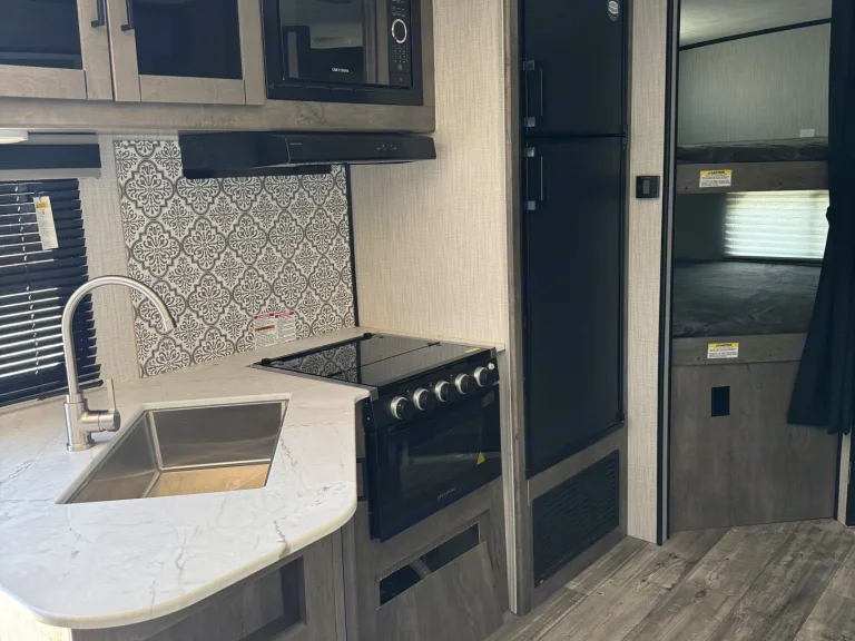 This is the best RV we’ve ever stayed in. The slide out is incredible and adds a great area for family time. We played games while our boys napped and loved it. The outdoor kitchen is really fun and kept cold drinks easy to grab. The automated stabilizer jacks made set up and departure incredibly easy. The storage in the front is huge and made it easy to keep camp stuff and bedding separate. The bedding was super comfortable and the AC made our trip comfortable the entire time.