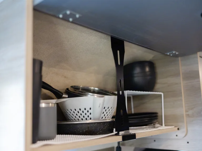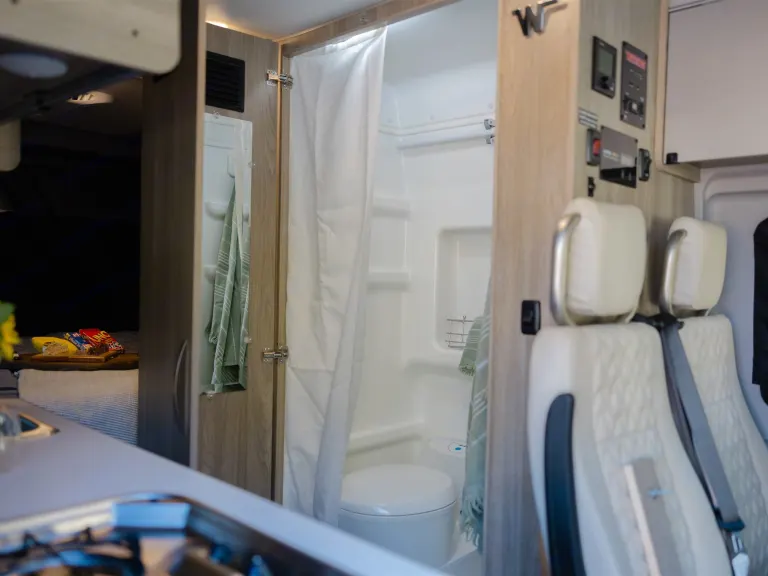 Instead of a black tank, the RV comes stock with a 5 gallon cassette toilet. Set up in suit case style you can dump in a regular toilet or at a dump station. It comes prepped and ready for use with black tank solution. Worried? Don't mess with the mess, our prep fee includes complete prep and post sanitation of this feature for your ease. No hidden dump fees (pun intended.)