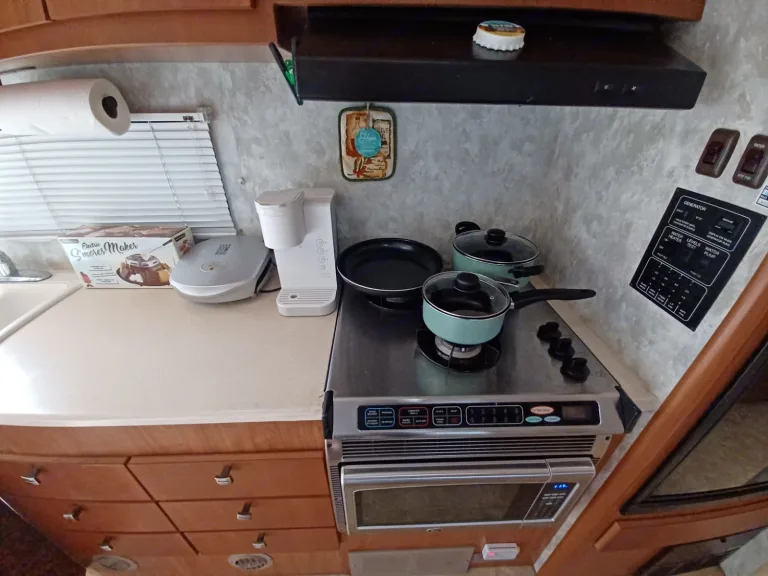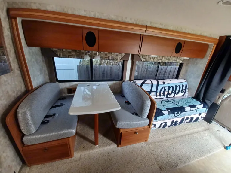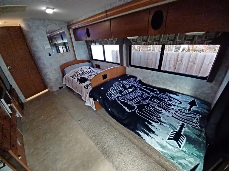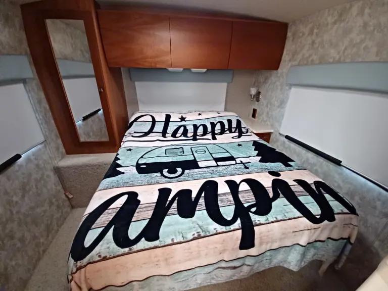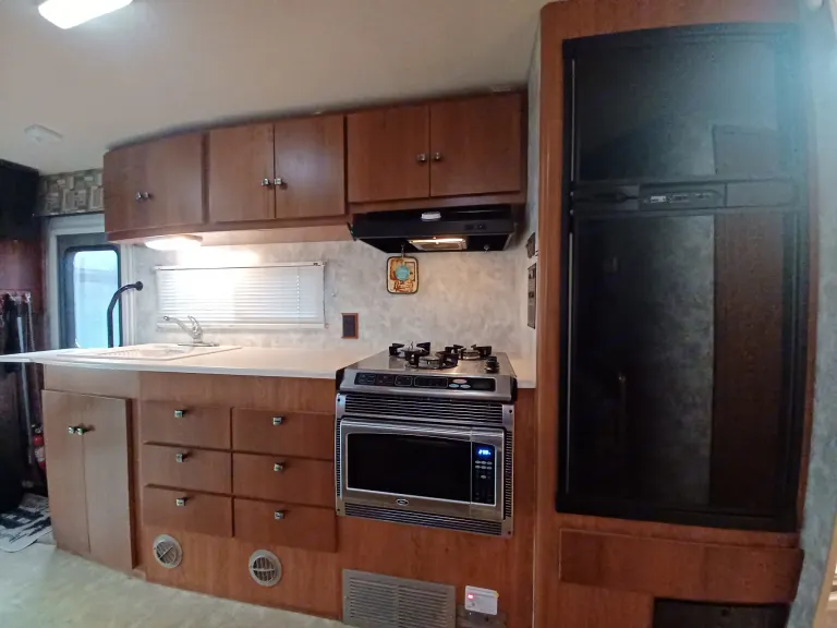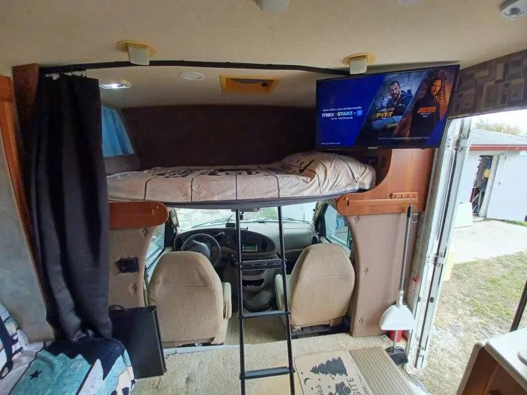 slide-out offers plenty of space and comfortable seating. Both dinette table and couch fold into beds. Comfy Queen bed in the back and two-person bed over the cab. Technically travel 9 (9 seat belts), sleeps 8 but 6 comfortably. Comes fully furnished for your camping adventure with an additional outdoor shower.Cosa è incluso• Clean linens, blankets, and basic cookware are included in addition to a full service kitchen with a stove.RaccomandazioniCheck my YouTube channel (FMRVrentals ) for videos related to this RV.Altre cose di cui prendere notaWe do expect her to be returned in the condition she left.**** Pet fee will be added on at the end if you end up bringing a pet and didn't include the fee**** No smoking in the rv. There will be a $500 charge to remove the scent of smoke if you smoke in the rv****Owner reserves the right to deny any rental at any time**Please note that tanks must be emptied prior to returning.