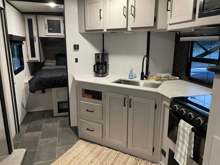 Feel free to send a message and we will put a quote together for you.*Only Available TO Take TO Campgrounds With Proper SET UP (Electric, Water, Sewage AND Dumping Area)Cosa è inclusoWe have everything you need to make your trip as simple as possible - all the basics for your cooking needs including Blackstone grill and outdoor kitchen. Additional kitchen items - pots, pans, coffee pot, toaster.Extras included: outdoor rug, basic camp chairs, linens and towels - if there is anything we are forgetting let us know.Sleeping: King Size Bed, double bunks and kitchenette converts to a bed.RaccomandazioniYou may need a cooler to give yourself more space in the refrigerator. If bringing pets consider portable fence/tie up, bedding and cage.Altre cose di cui prendere notaPlease no smoking in or near RV. No pets on beds or furniture. And sorry we can not allow cats - only dogs.
