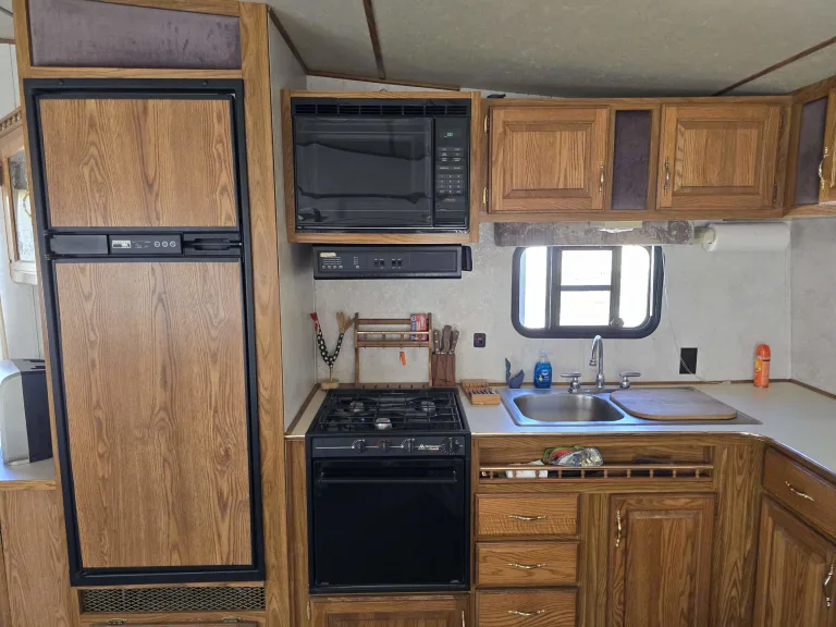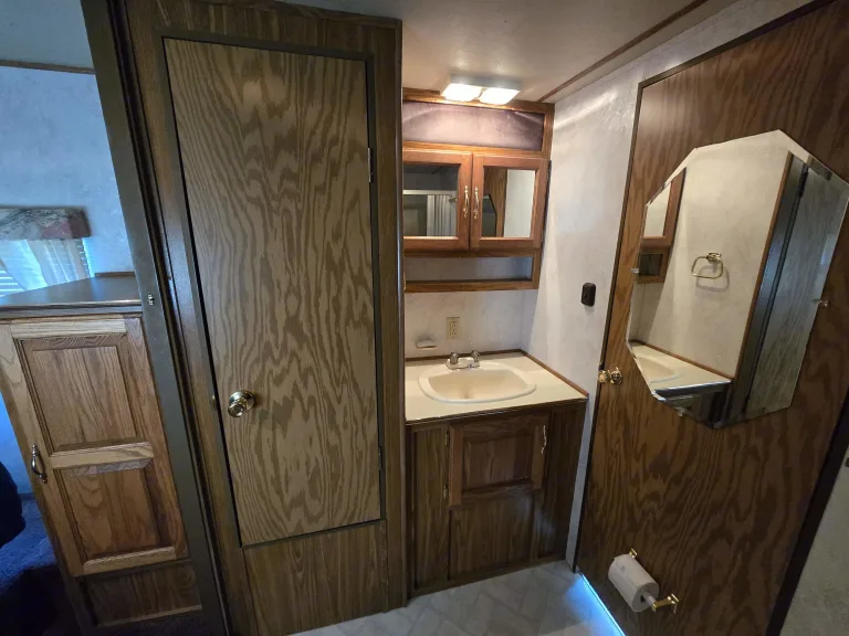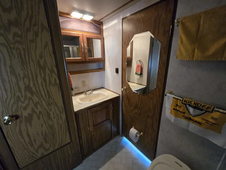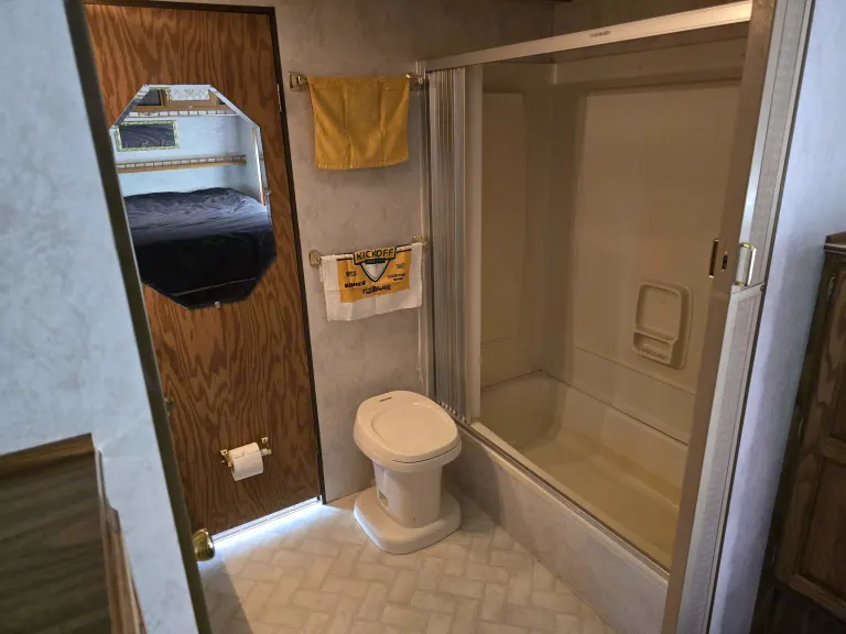 Travel back in time and revisit the camping experiences of your youth in this 1995 Dutchmen Royal camper. Want to camp without the work? We will set up the rig for you, ready to go when you arrive! You will feel like you stepped back into the 90's when you enter this all original, beautifully maintained, clean and comforting rig, equipped with a kitchen including stovetop, oven, microwave, fridge & freezer, a private bedroom with a queen-sized bed, private bathroom complete with sink, toilet & shower, a fold-out couch, rocking chair, and convertible dinette. There is plenty of closet, cabinet, and drawer space, as well as exterior storage underneath for your adventure gear! Cosa è inclusoThe a/c blows cold in all rooms of the camper. We include 4 camp chairs, a camping table, cookware, utensils, plates, cups, and coffee pot. The living room features a small TV with DVD player & a radio system that plays throughout. The bathroom is stocked with towels & a hair dryer. The bedroom includes fresh linens and extras for the couch and dinette. A screenhouse is packed inside and available for setup. An assortment of games, balls, and water toys stays with the camper, available for you to use!RaccomandazioniDoor County is the Cape Cod of the Midwest, with Bayside and Lakeside adventures only minutes apart. Choose from one of the 18 campgrounds on the peninsula, set your rig, and go! Featuring 19 county parks and home to 5 state parks including Potawatomi, Whitefish Dunes, Peninsula, and Newport which offer trails for running, biking, cross country skiing, and snowmobiling as well as beautiful beaches, shoreline, and boating opportunities. Take a boat ride to Rock Island for great hiking, paddling, and scenery in a secluded setting. Stop by our local wineries for a tasting or enjoy our famous Fish Boils featured at one of our many dining establishments. Tour the lighthouses, ride the Ferry to Washington Island, kayak Cave Point, hike Potawatomi Park and climb the tower, enjoy Pick-Your-Own Cherry orchards, or take a scenic boat cruise at sunset.A link to local campground listings:
