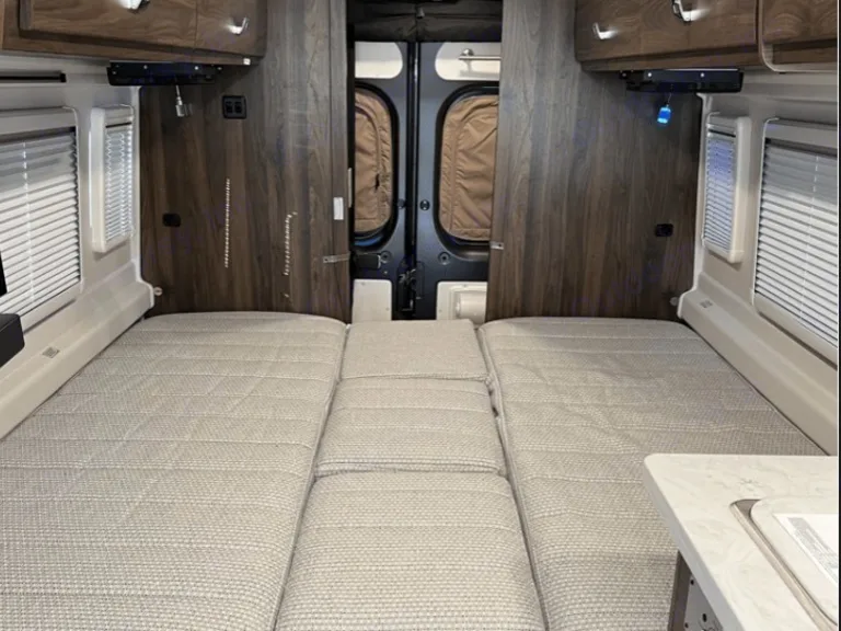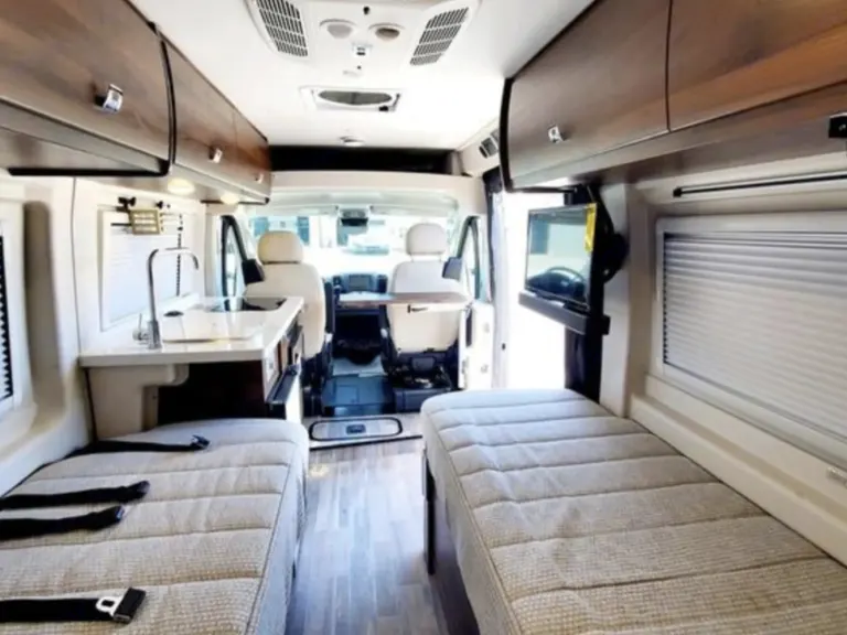 For dining al fresco, there is a powered patio awning with LED lighting, huge side screen doors with magnetic closures to keep to bugs out.Kitchen includes a cooktop, microwave oven, refrigerator, cold water filtration system, utensils and sink with cover.To keep cool and private, there are side curtain, Sunvisors, front and cab window privacy panels to control the light that enters the camper van.For those evenings and rainy days, enjoy the 24″ Hdtv and Bluetooth® soundbar at the living area. It has an amplified digital TV antenna to receive better signal.The bathroom is what sold us. It is quite spacious for a Class B RV. It has a toilet with foot pedal and sprayer, a flexible showerhead, curtain, sink, and mirror. It is separated from the rest of the coach by a sliding door. You can even set up a shower outside or spray off gear.The two single beds can be converted to a king. It is easy to put together and actually Comfortable.It's fuel and energy efficient.Cosa è inclusoItems included in Altitude Adventures Campervan:2 Pillows, 3 towels, 2 light blankets,