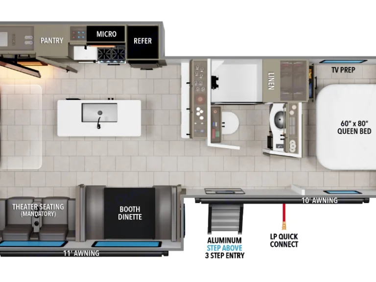 Step inside and you'll immediately notice the thoughtful layout and high-end finishes that make Grand Design one of the most trusted names in RVs.Private Master Bedroom: Queen-sized bed with memory foam mattress, bedside storage, and sliding privacy door.Spacious Living Area: Large slide-out with dinette and 4 chairs and a sofa — that turns into a bed full size bed, sleeping up to 2 comfortably.Fully Equipped Kitchen: 3-burner gas stove, oven, microwave, full-size refrigerator/freezer, deep sink, and ample counter space. Comes stocked with cookware, dishes, utensils, and a coffee maker.Bathroom: Full bath with roomy shower, flushing toilet, vanity, and plenty of storage for towels and toiletries.Entertainment: Flat-screen Smart TV, Bluetooth indoor/outdoor speakers, and Hdmi hookups.Climate Control: Efficient A/C and furnace for year-round comfort.Outdoor Awning: Power awning with LED lighting — great for relaxing under the stars.For deliveries Only