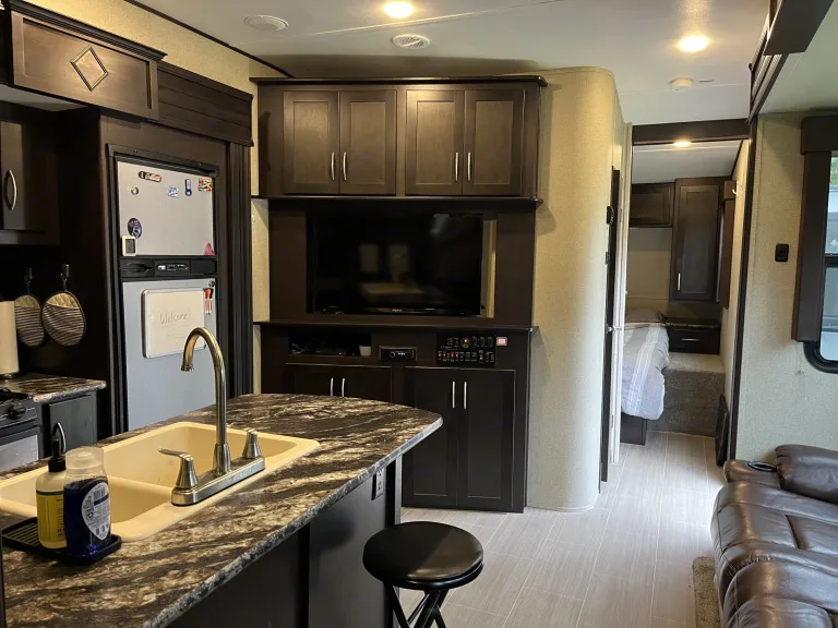 Whether you’re planning a weekend getaway or need an extended stay somewhere, the 2018 Keystone 35 Toy Hauler is the perfect companion. It combines rugged durability with luxurious amenities, ensuring that you can enjoy both your toys and your downtime in ultimate comfort. The clever design, ample storage, and high-end finishes make this toy hauler a standout choice for RV enthusiasts seeking both adventure and relaxation.This Toy Hauler is a perfect blend of comfort, style, and versatility, designed to provide both convenience and luxury for adventure enthusiasts and road travelers alike. This toy hauler is designed to accommodate all your outdoor gear, recreational toys, and ensure that you don’t have to compromise on comfort while on the go.Here’s a closer look at the standout features and amenities of this remarkable RV: