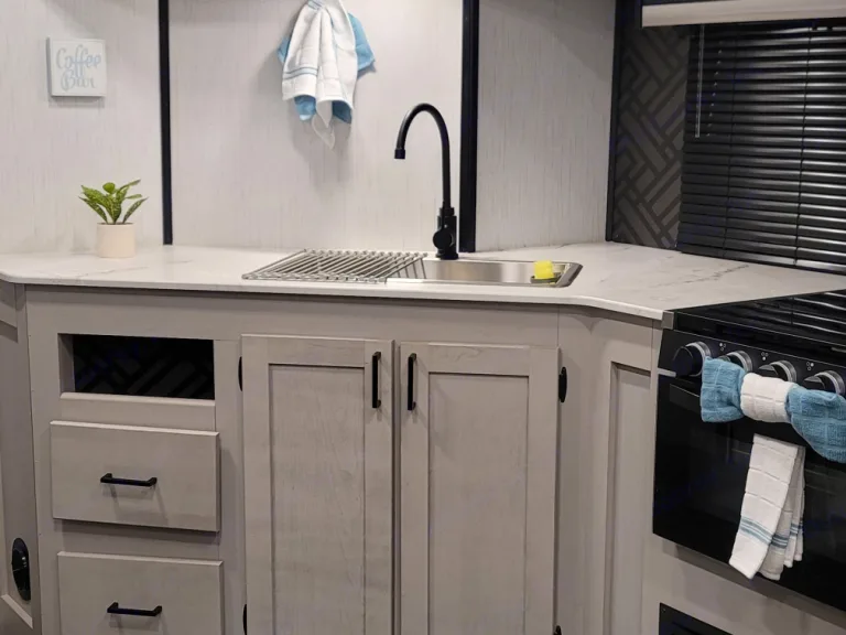 -Electrical Awning with LED lights, outside kitchen prep area with ice maker and 2 LP gas tanks (40lbs capacity)Cosa è incluso• Bathroom includes: towels, toilet paper, and towels